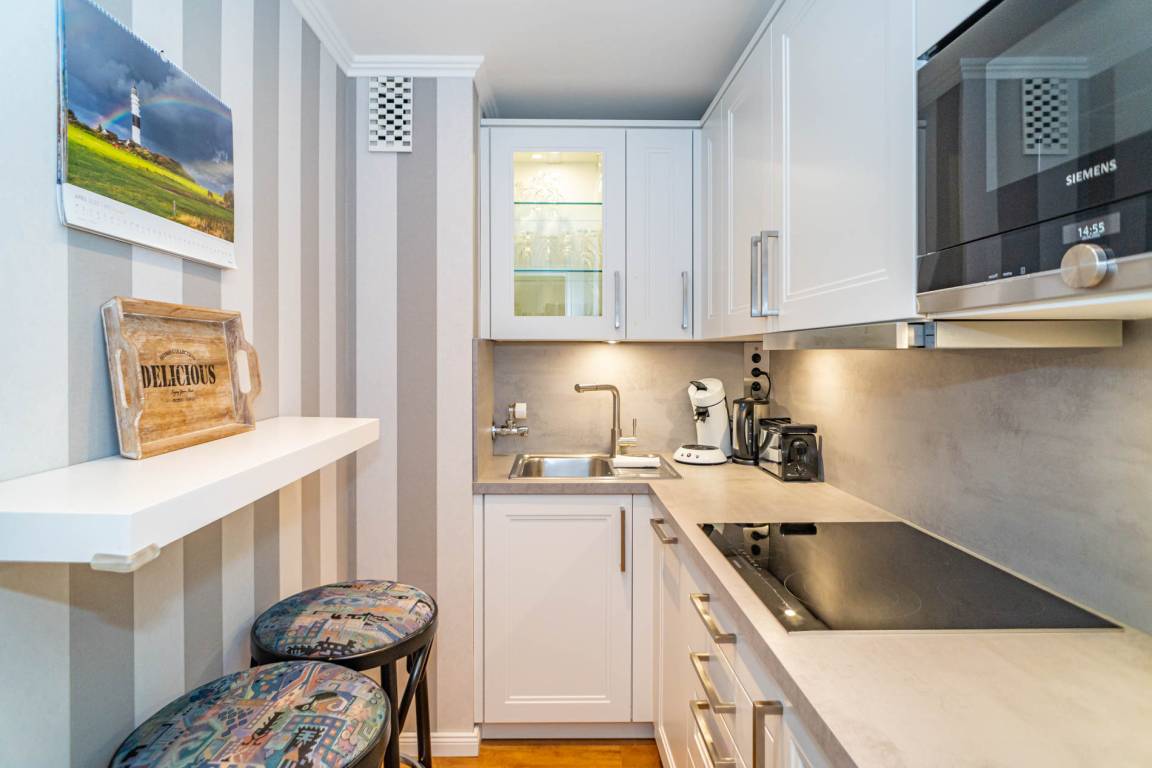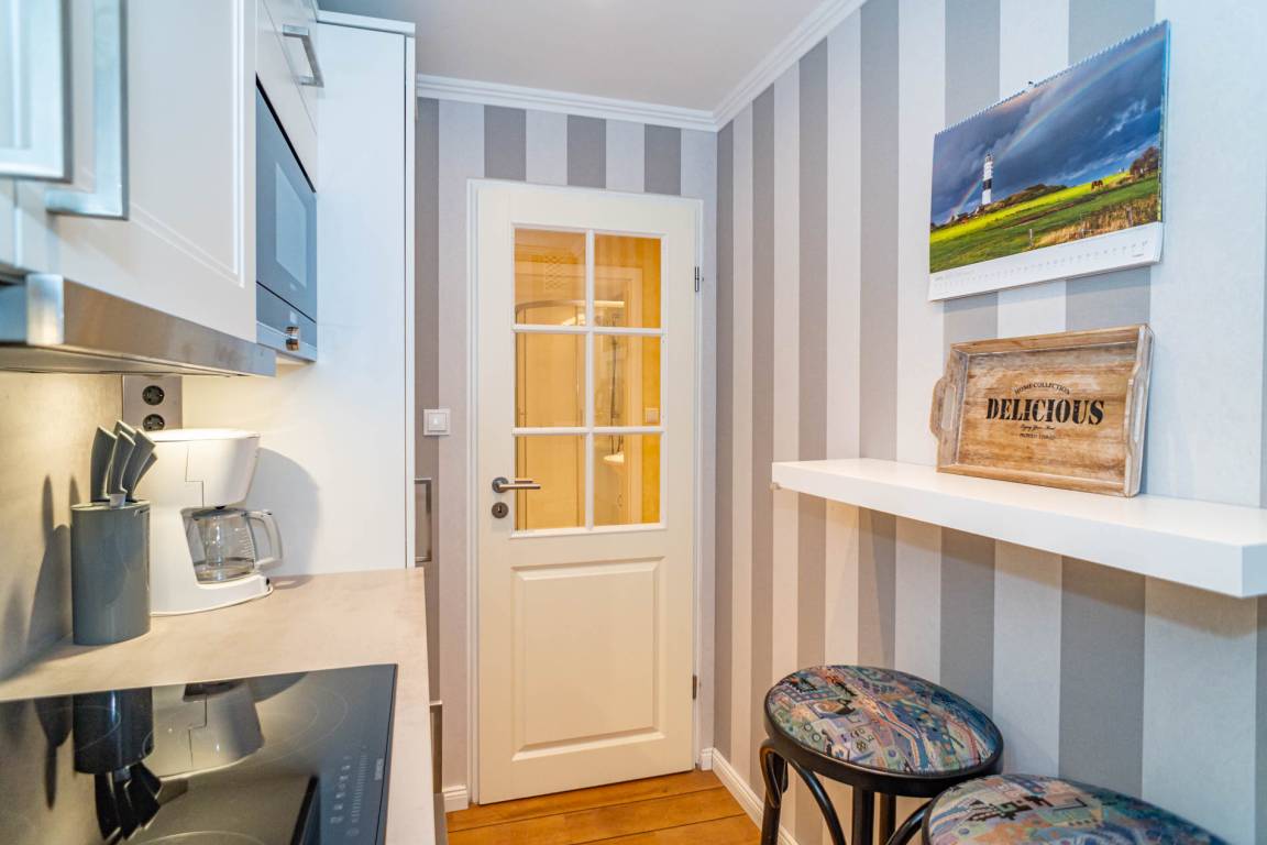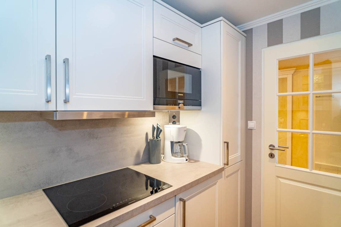 Die Küche hat einen Geschirrspüler, eine Mikrowelle, ein Ceranfeld mit 4 Kochfeldern und einen Kühlschrank. Kaffeemaschine, Senseo-Maschine, Wasserkocher und Toaster gehören zur Grundausstattung.