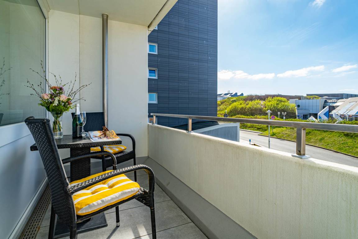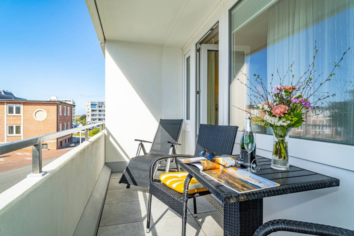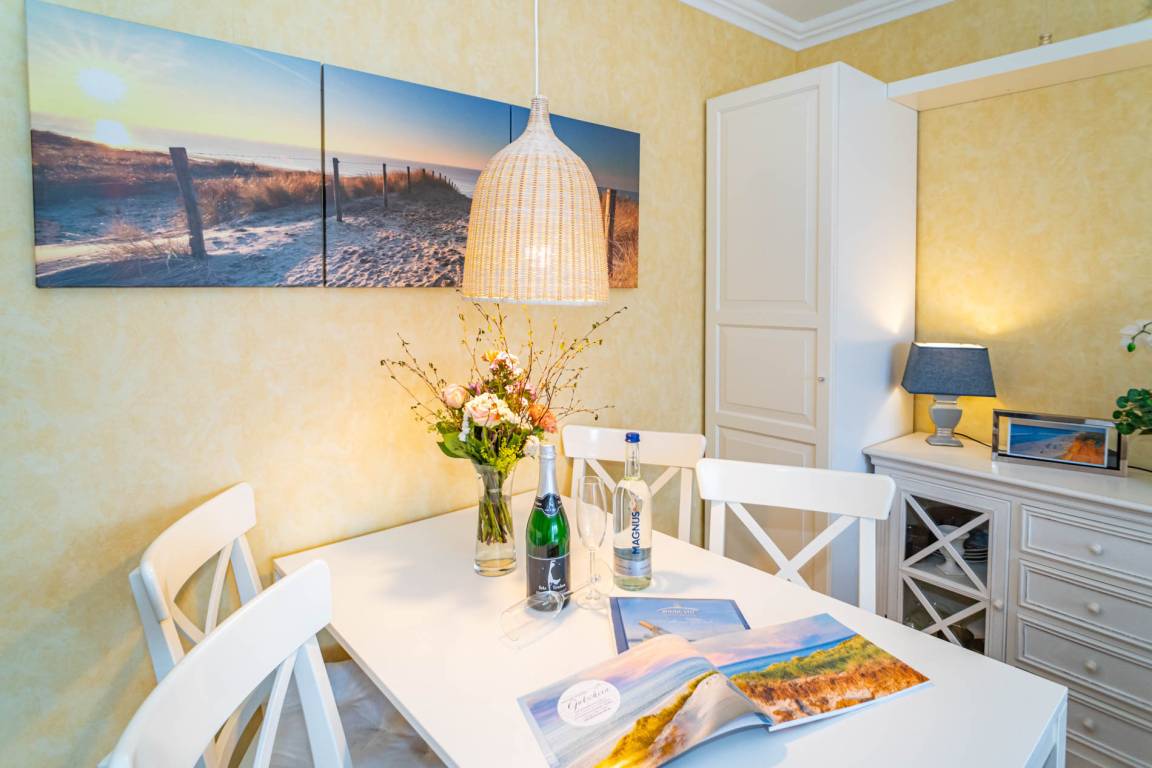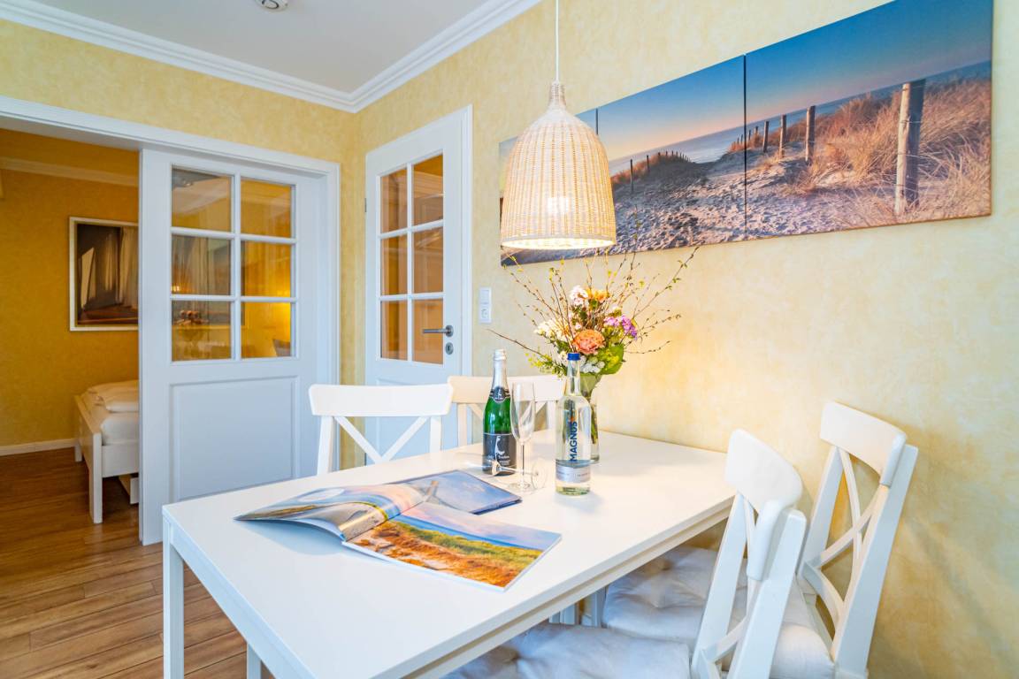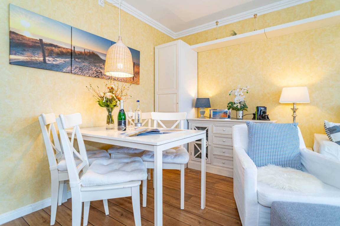 1,5-Zimmer-Nichtraucher-Ferienwohnung (ca. 50 qm) in der 1. Etage zur Seeseite mit Westloggia (Nachmittagssonne, mit Balkonmöbeln und Auflagen) für max. 2 Personen.
