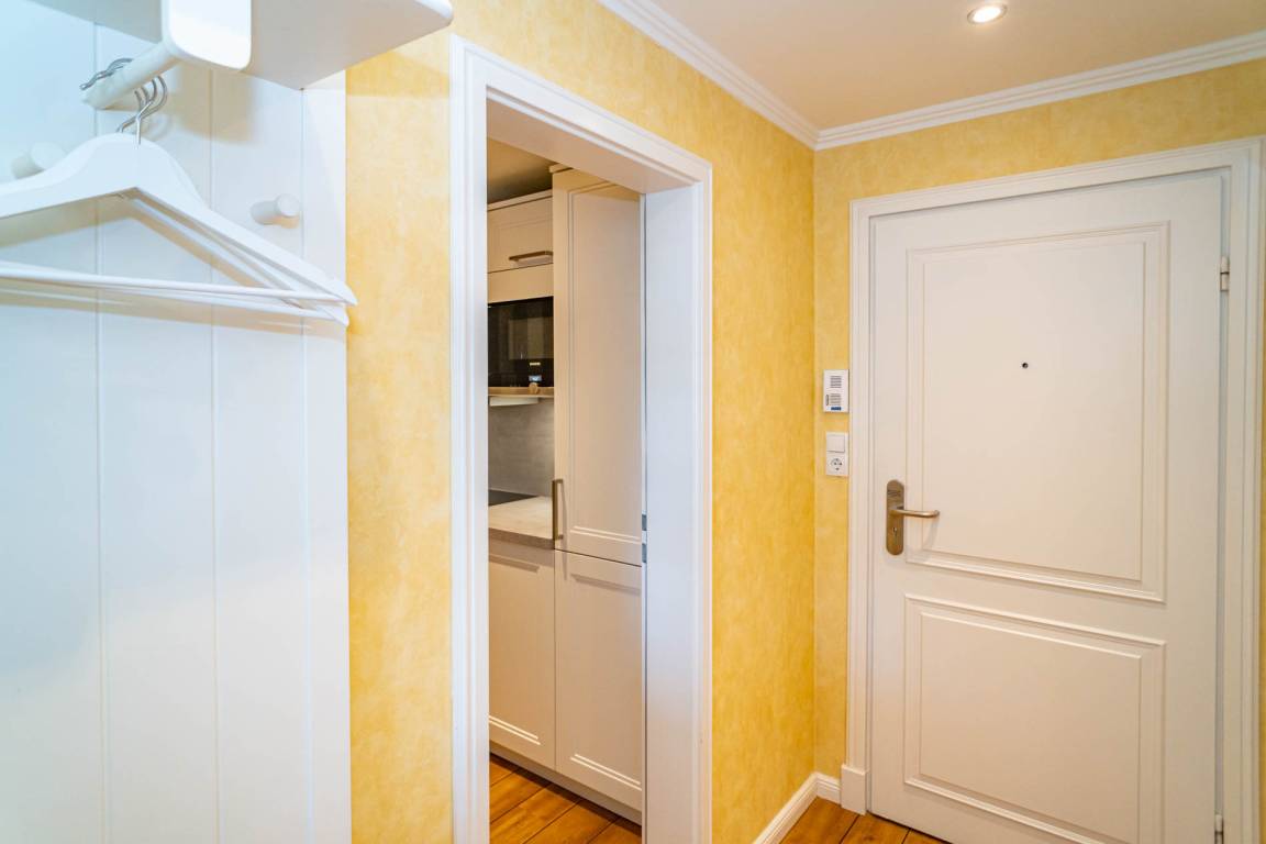 Vom Vorflur mit Garderobe gelangt man in das Wohnzimmer (mit Austritt zum Balkon), in die neue Küche (Dezember 2017 erneuert) und in das moderne Duschbad/WC.