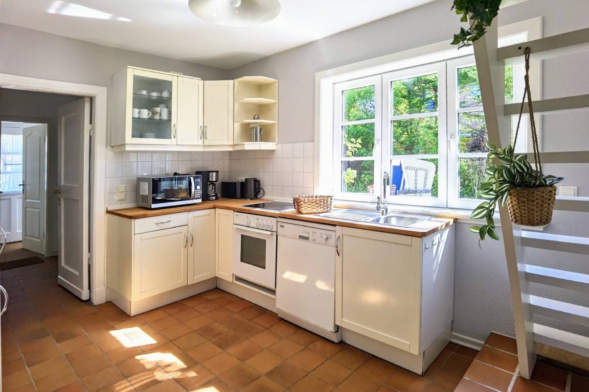 Die voll ausgestattete Küche hat einen Geschirrspüler, eine Mikrowelle, ein 4-Platten-Cerankochfeld, einen Backofen und einen Kühlschrank mit 3-Sterne-Gefrierfach. Kaffeemaschine, Wasserkocher und Toaster gehören zur Grundausstattung.