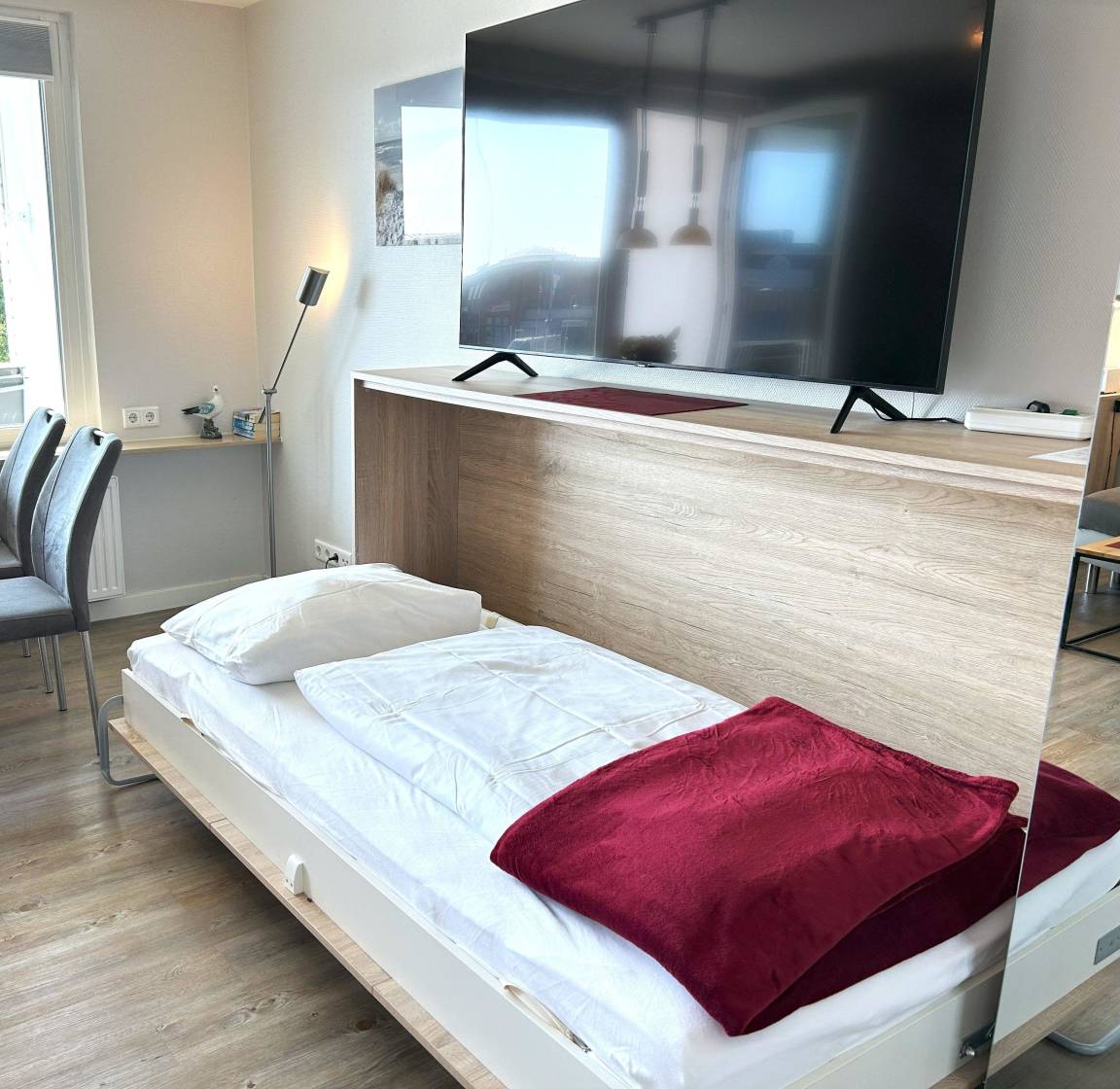 Im Zeitraum bis voraussichtlich 10.04.25 findet an einem anderen Bauteil des Hauses Atlantik eine Balkon- und Fassadenrenovierung statt. Da aus diesem Grund mit Lärm- und/oder Schmutzbeeinträchtigungen zu rechnen ist, haben wir die Mietpreise um 10% am Wochenende und 20% ab 5 Nächten und in der Woche reduziert.