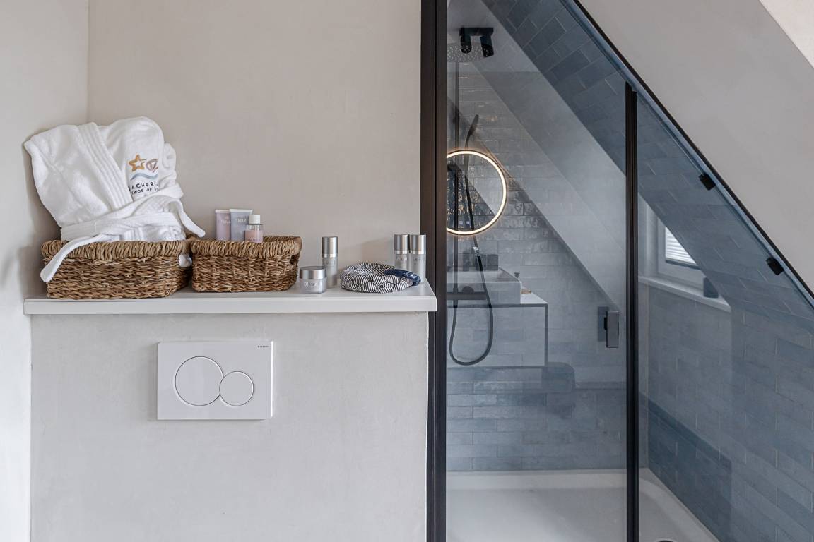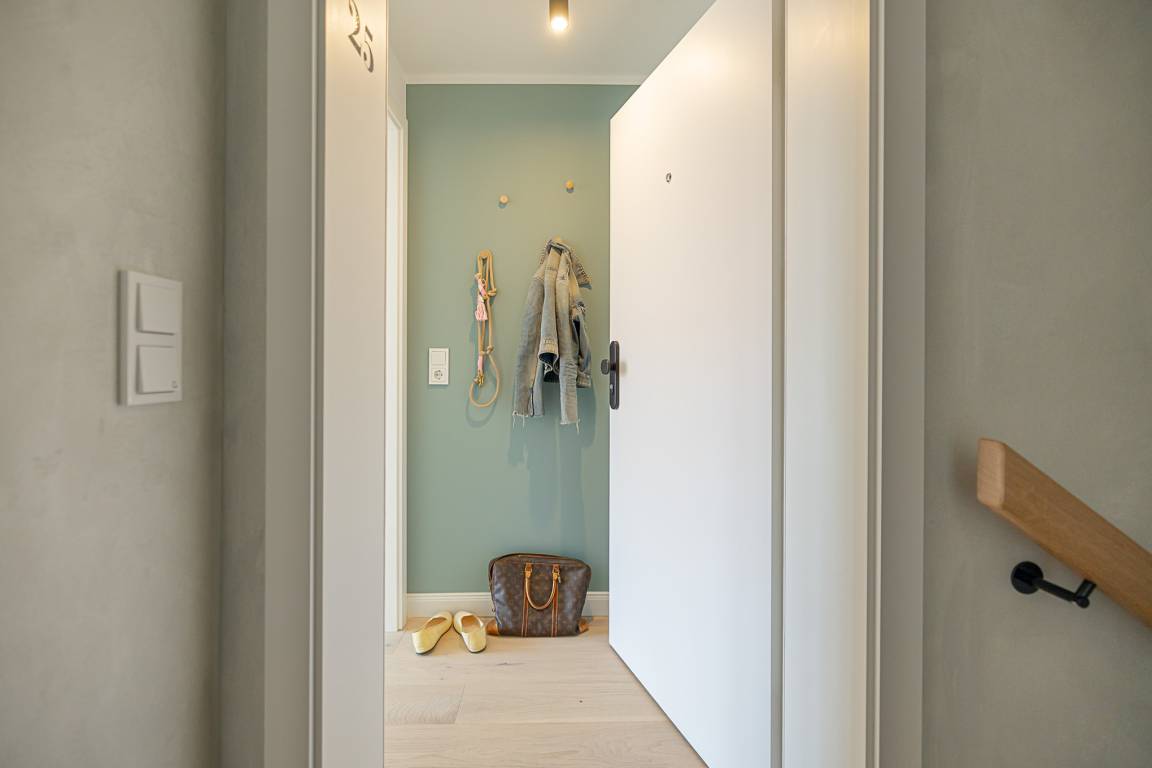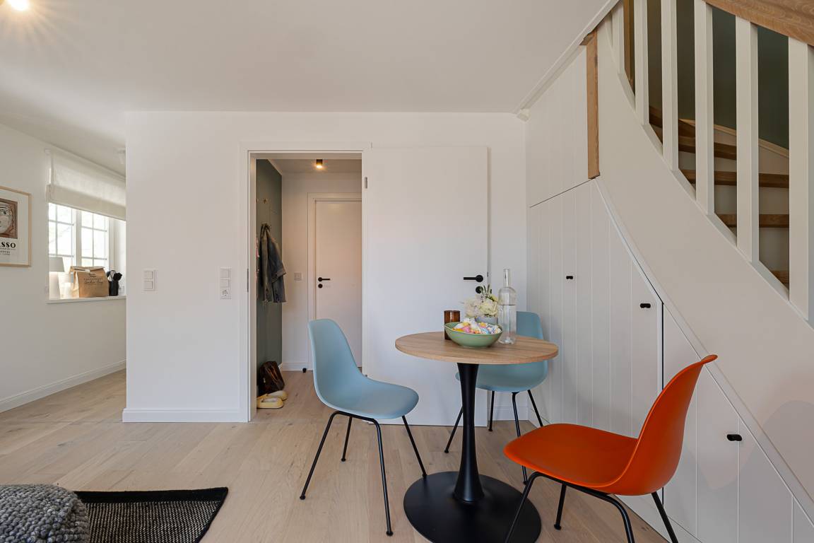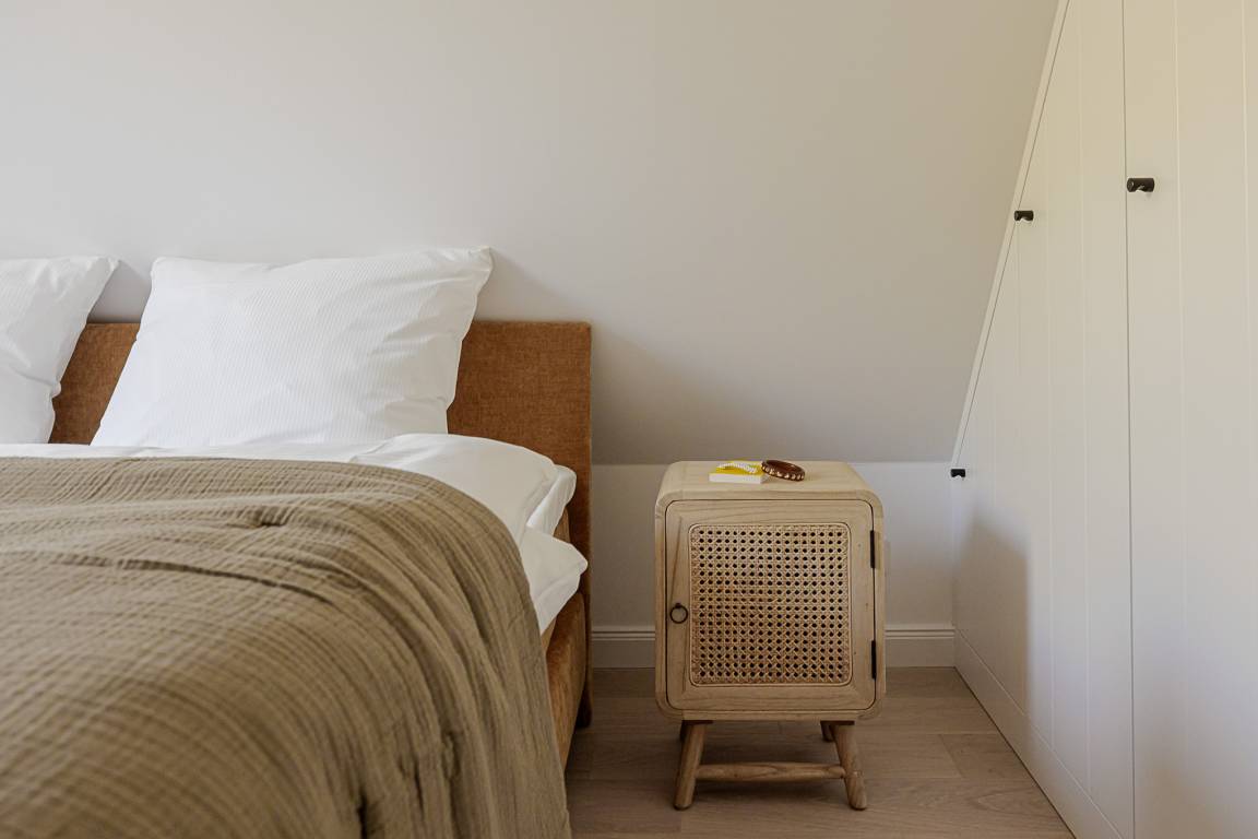 Eine Extraportion Vitamin Sea im CPTN Nicolai Resort. Mitten in Westerland, im neuen CPTN Nicolai Resort, erwartet Sie unsere frisch renovierte Kajüte #25 im Dock 6c. Die stilvolle Zwei Zimmer Wohnung liegt im Obergeschoss und bietet auf 43 Quadratmetern den idealen Rückzugsort für erholsame Tage auf Sylt. Bis zu drei Personen finden hier ein modernes Zuhause auf Zeit mit echtem Inselgefühl. Beim Eintreten empfängt Sie ein heller, geschmackvoll gestalteter Wohn und Essbereich mit warmem Eichenparkett und einer Einrichtung, die Ruhe und Qualität ausstrahlt. Das komfortable Schlafsofa im Wohnbereich lässt sich bei Bedarf in eine zusätzliche Schlafmöglichkeit verwandeln. Die moderne Küche ist hochwertig ausgestattet, unter anderem mit Geräten von Siemens, und bietet alles, was Sie für ein entspanntes Frühstück oder ein gemeinsames Abendessen benötigen. Funktional, durchdacht und angenehm unaufgeregt. Das Badezimmer ist in sanften Farben von Meer und Sand gehalten und wird mit Regendusche, Fußbodenheizung und Handtuchwärmer schnell zu Ihrer kleinen Wellnessoase. Über eine Treppe gelangen Sie auf das Oberdeck, wo ein bequemes Boxspringbett für erholsame Nächte nach langen Strandspaziergängen sorgt. Ein weiteres Highlight ist der Balkon, der von Mai bis Oktober mit bequemen Möbeln zum Durchatmen, Sonnen und Verweilen einlädt.Als Gast nutzen Sie den 200 Quadratmeter großen Pool und Saunabereich in Dock 6d kostenfrei. Ein 12 mal 4 Meter Pool, Sauna, Loungebereich und moderne Fitnessgeräte stehen Ihnen zur Verfügung. Hunde sind herzlich willkommen. Ein kostenfreier Parkplatz gehört ebenfalls zu Ihrer Kajüte. Ankommen, aufladen und Sylt genießen. Genau dafür ist diese Kajüte gemacht.