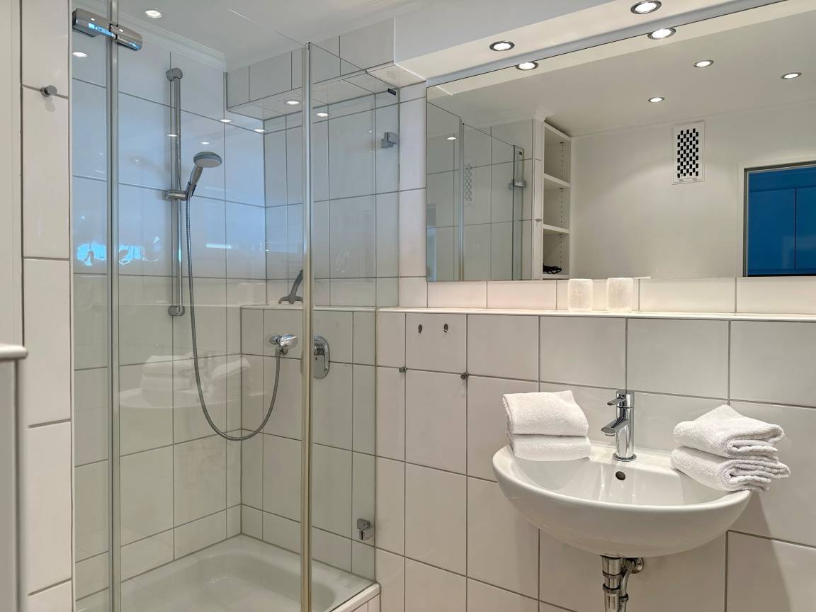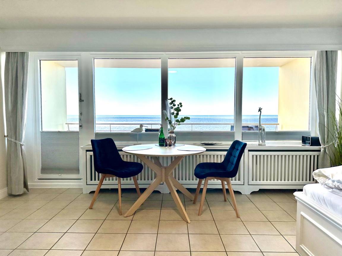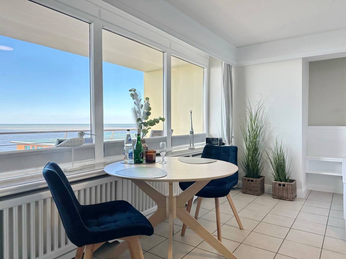 Großes 1-Zimmer-Apartment[nbsp][nbsp]im 1. OG des Haus "Metropol" mit Meeresblick. Ca. 45 m², Nichtraucher. Großes Wohn-/Schlafzimmer mit Doppelbett (2x90x200) und Einbauschrank, Sitzecke bestehend aus Sofa und Sessel, Essplatz am Fenster, Flat-TV, Radio, W-Lan (ohne Gewähr). Separate Küche mit Geschirrspüler, Mikrowelle und 2-Platten-Cerankochfeld. Duschbad/WC und Diele. Sonniger Westbalkon mit Balkonmöbel und Meeresblick. Das Apartment ist komplett gefliest. Tierhaltung ist nicht gestattet. Bettwäsche und Handtücher sind zur Anreise aufgezogen. Ein PKW-Stellplatz kann kostenpflichtig zugebucht werden.