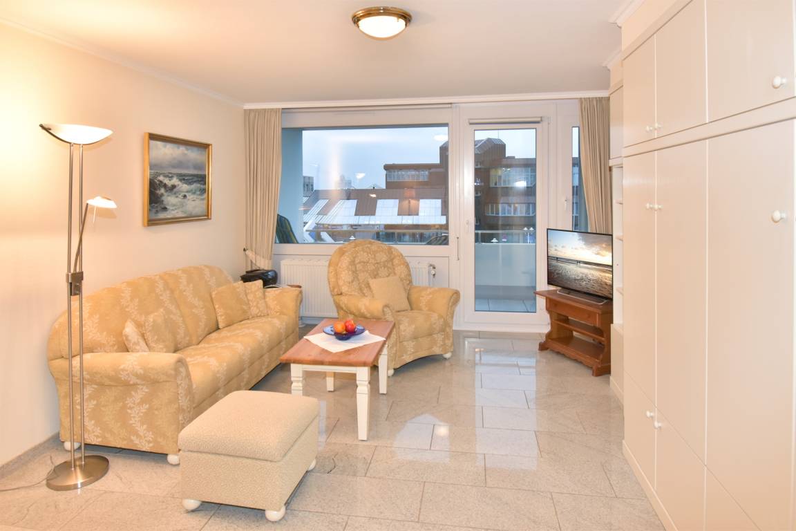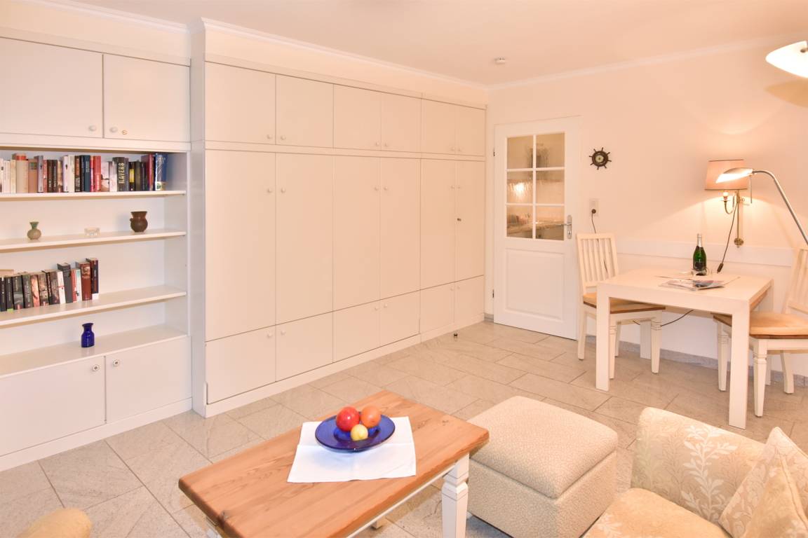 Gemütliches 1-Zimmer-Nichtraucher-Appartement (ca. 32 qm) in der 2. Etage zur Seeseite mit Westloggia (Nachmittagssonne, mit Balkonmöbeln und Auflagen) für max. 2 Personen.