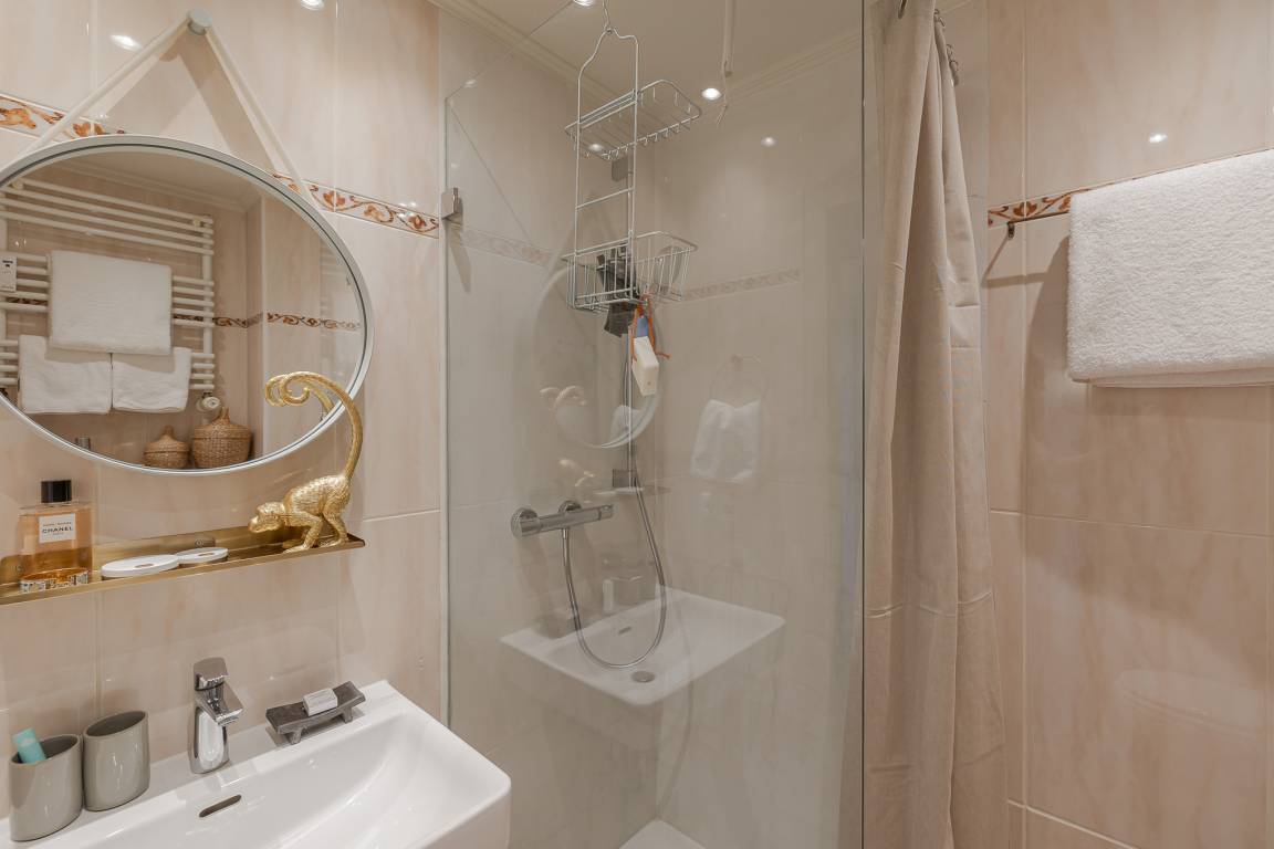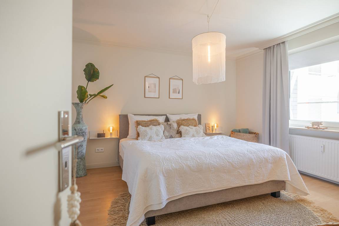 Das Schlafzimmer verfügt über ein komfortables Boxspringbett und ausreichend Stauraum.Im modernen Badezimmer erwarten Sie eine Dusche, ein WC sowie ein Handtuchheizkörper.