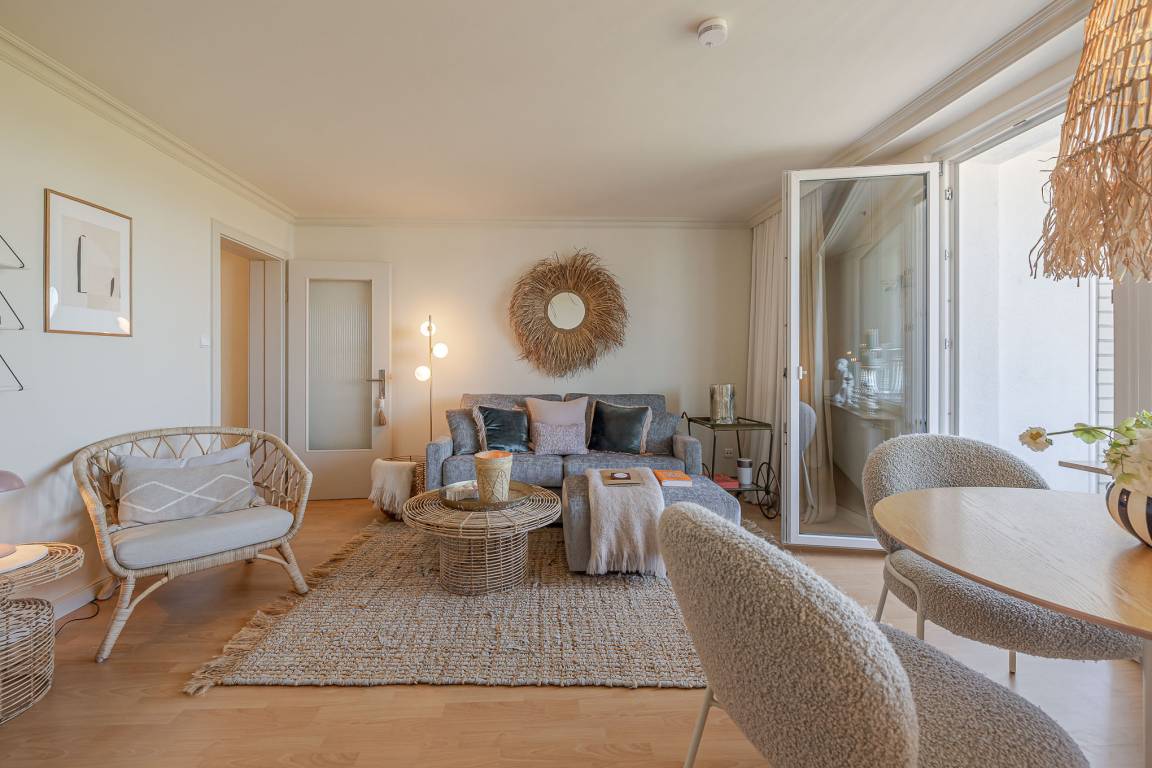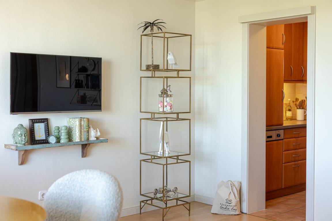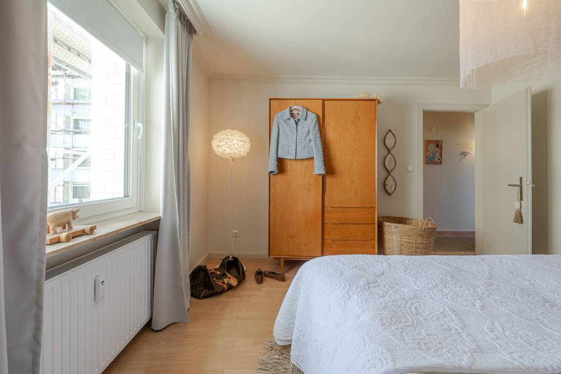 Die ca. 54 m² große Wohnung im zweiten Obergeschoss bietet Platz für 2 Personen und ein Kleinkind. Besonders schön: der Westbalkon mit Blick Richtung Meer – perfekt für sonnige Nachmittage oder einen entspannten Abend nach dem Strand.