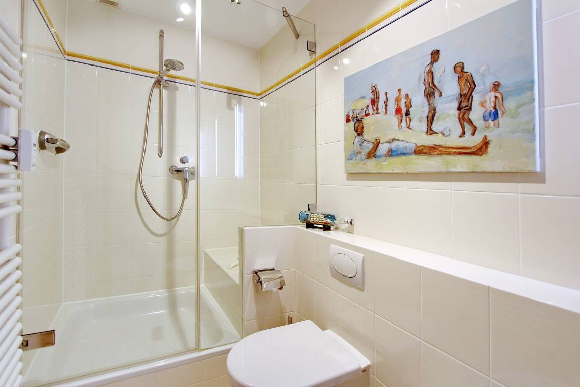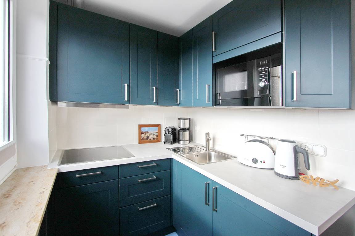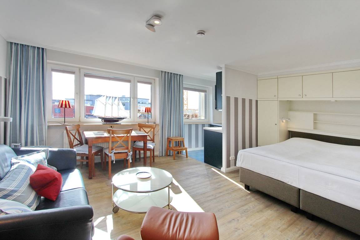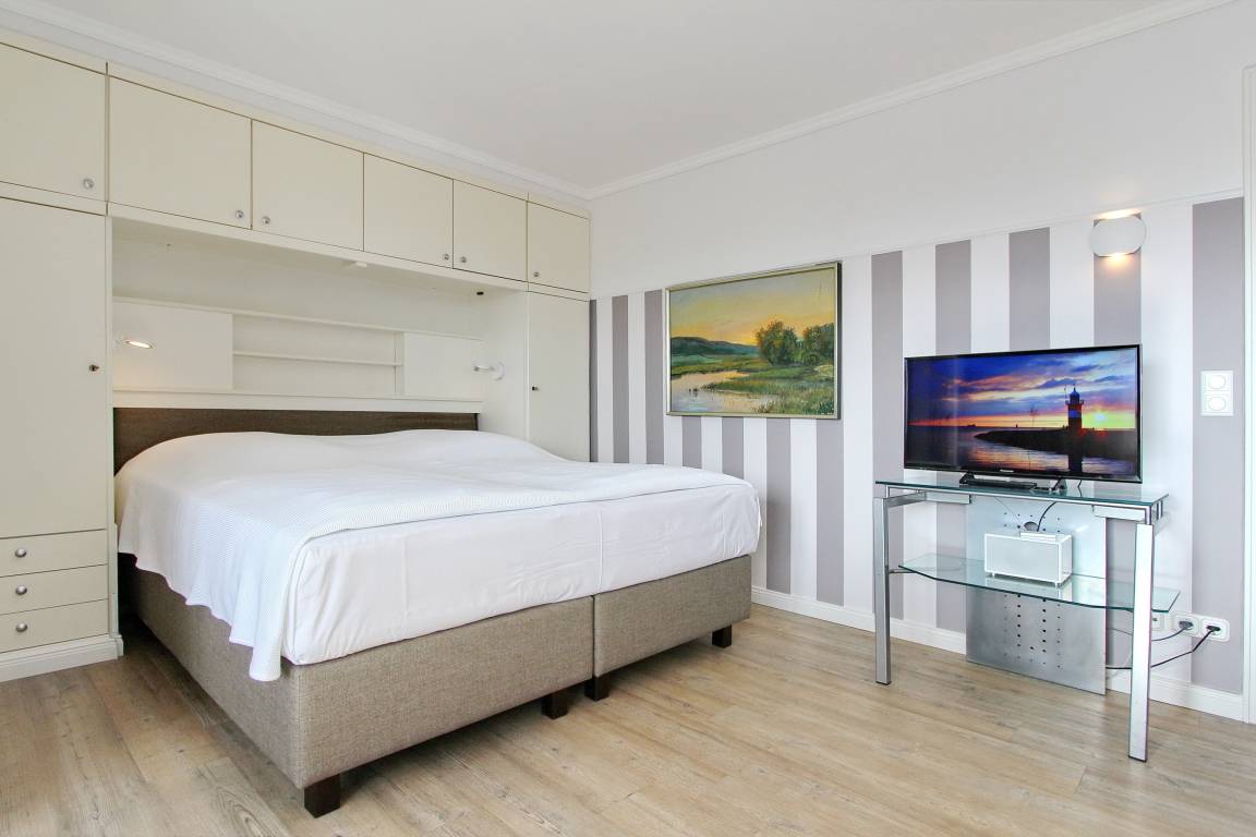 Liebevoll, hell und freundlich, eingerichtete 1 Zimmer Wohnung in der 4. Etage in unmittelbarer Nähe zum Strand und der Westerländer Promenade. Der kombinierte Wohn-Schlafraum verfügt über ein neues Boxspringbett mit höchstem Schlaf-sowie Ein-und Ausstiegskomfort, einen Essplatz am Fenster mit 3 Stühlen und eine Ledercouch und Sessel für gemütliche Fernseh- oder Leseabende. Im Einbaukleiderschrank haben Sie ausreichend Platz für Ihre persönlichen Dinge. Die offene Einbauküche mit Fenster ist mit einer Mikrowelle, einem Ceranfeld, einer zusätzliche Nespressomaschine und einem Geschirrspüler ausgestattet. Selbstverpfleger können sich hier ein köstliches Frühstück oder kleine Mahlzeiten zubereiten. Der Holzlaminatboden gibt dem Raum Wärme und Gemütlichkeit. Das großzügige Badezimmer verfügt über eine Dusche und ein Bidet. Zu ihrer Unterhaltung steht ihnen ein Smart-Flachbildfernseher, ein DVD Player, eine Stereoanlage mit Bluetooth und Kopfhörer, sowie eine umfangreiche Auswahl an DVDs, Büchern und Spielen zur Verfügung. Ein Hotspot im Haus ermöglicht ihnen kabellosen und kostenlosen Zugang ins Internet (WEG-AD3 - Passwortfrei - ohne Gewähr). Diese Wohnung ist eine Nichtraucherwohnung. Haustiere sind ausdrücklich willkommen. Wohnungsgröße: ca. 35 m².