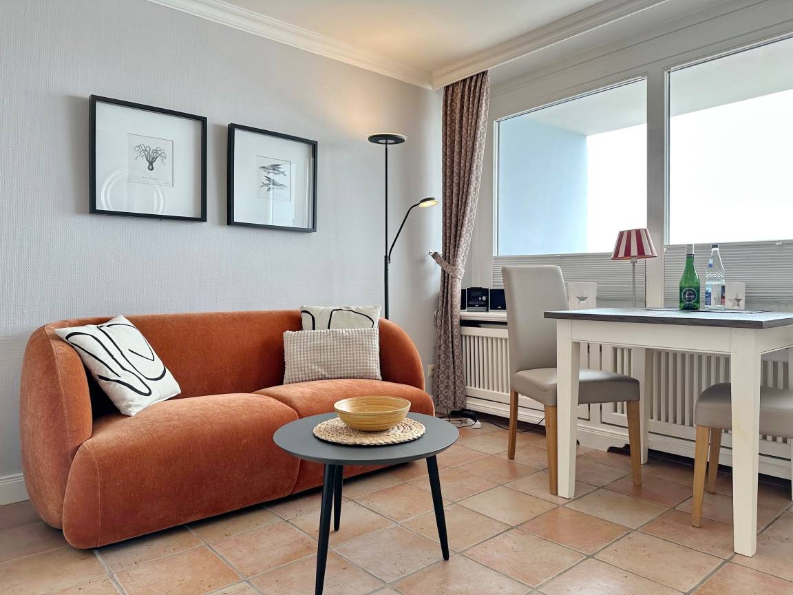 1-Zimmer-Apartment im 13. OG im Haus "Metropol" mit freiem Meeresblick, ca. 34 m², Nichtraucher. Großer Westbalkon mit Balkonmöbeln. Die Wohnung ist komplett gefliest. Wohn- und Schlafzimmer mit Podestdoppelbett (2x80x200), Essplatz am Fenster und 2-Sitzercouch und Sessel, Beistelltisch, TV, Radio. W-Lan (ohne Gewähr). Küchenzeile im Flurbereich mit Mikrowelle, Geschirrspüler und Cerankochfeld. Duschbad/WC. Tierhaltung ist nicht gestattet. Bettwäsche, Handtücher und ein PKW-Stellplatz können kostenpflichtig gebucht werden.