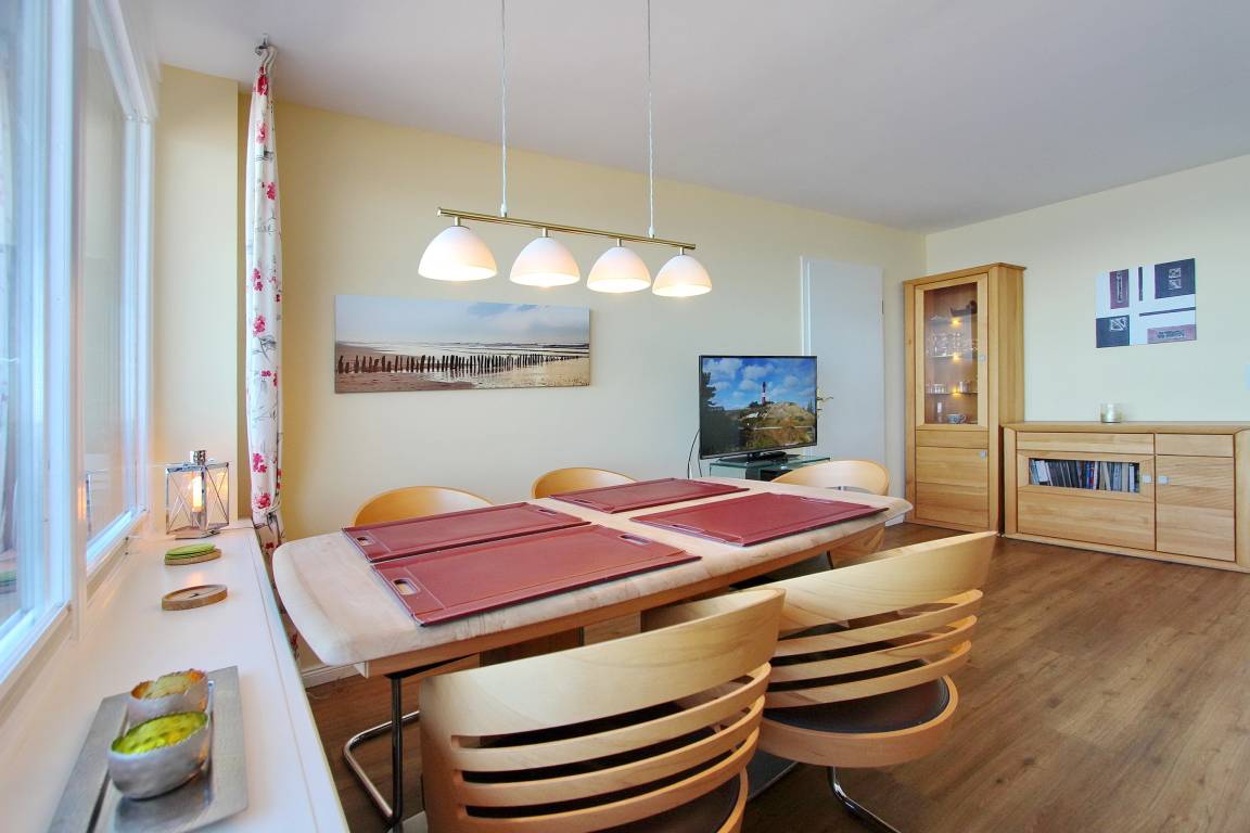 Hell und freundlich eingerichtete 2 Zimmer Wohnung in der 7. Etage im Haus Metropol für 1-4 Personen mit herrlichem Blick über den Strand und die Nordsee. Das Wohnzimmer mit vorgelagertem Westbalkon (Balkonmöbel vorhanden) hat eine bequeme Couch mit Schlaffunktion, einen Fernsehsessel, eine Schrankwand und einen Essplatz am Fenster mit 4 Stühlen. Das Schlafzimmer (mit kleinem Westbalkon) mit feststehendem Doppelbett hat eine begehbaren Kleiderschrank sowie eine Wohlfühlecke mit Relaxsessel. Im Badezimmer gibt es eine Dusche. Die separate Küche mit Geschirrspüler, Ceranfeld, Mikrowelle und Backofen lässt keine Wünsche offen. Zur technischen Ausstattung der Wohnung gehört ein Flachbildfernseher, Bluray-Player, Bluetooth Soundsystem inkl. Radio und CD Spieler. Ein freies WLAN Netzwerk (WEG Haus Metropol - Passwortfrei - ohne Gewähr) steht ihnen kostenfrei zur Verfügung. Ein nicht funktionierender Internetanschluss stellt keinen Mietminderungsgrund dar. Laut Eigentümer ist diese Nichtraucherwohnung Hausstauballergiker geeignet. Wohnungsgröße: ca. 67 m².