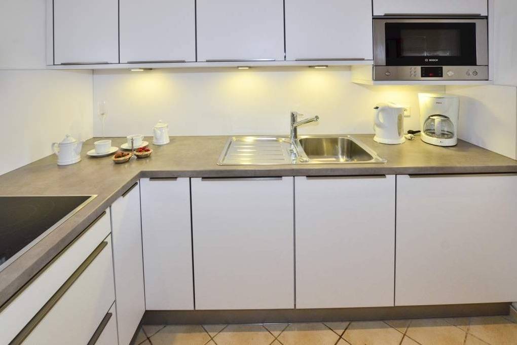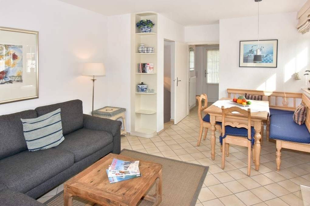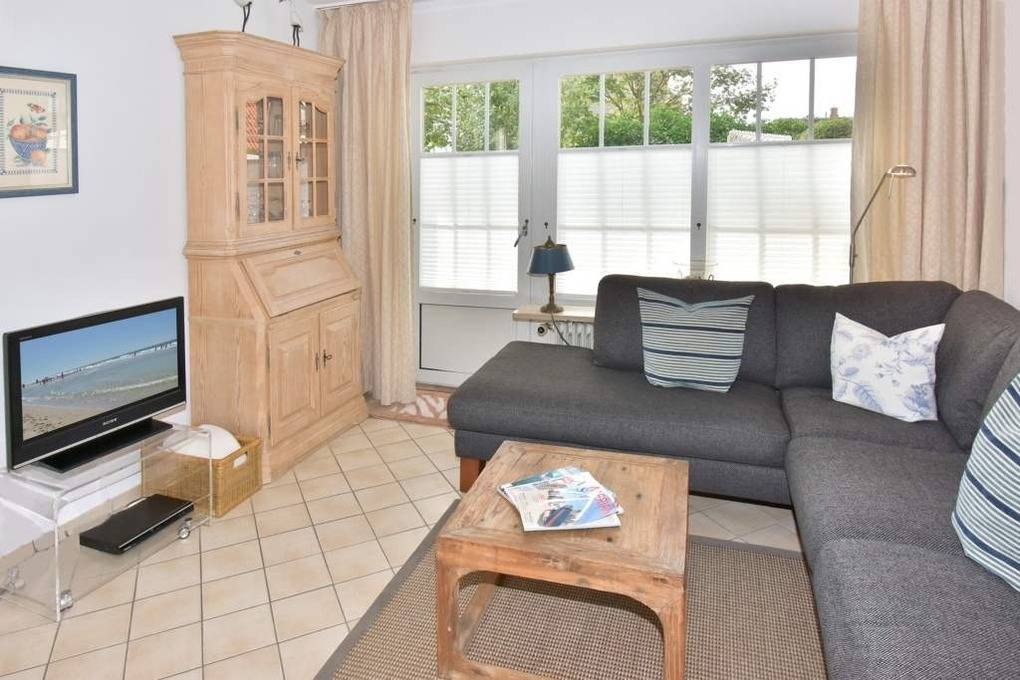 Wohnzimmer mit Sitzecke und Essplatz, Kabel-Flachbild-TV, DVD-Recorder, Radio/CD, Telefon, Terrasse mit Gartenanteil und Strandkorb, Küche mit Geschirrspüler, Mikrowelle mit Grillfunktion, Ceranfeld und Fenster, Kaffeemaschine, Wasserkocher und Toaster gehören zur Grundausstattung,