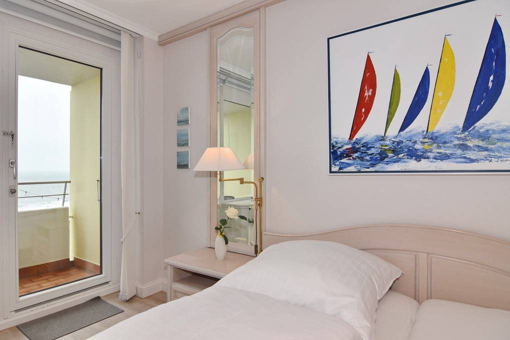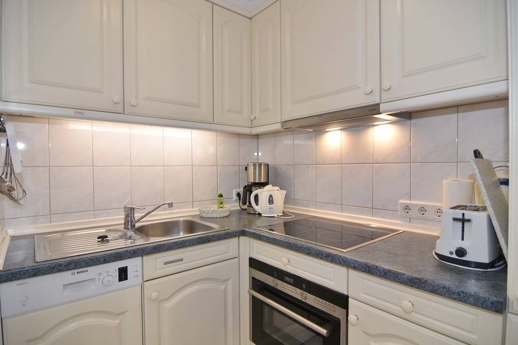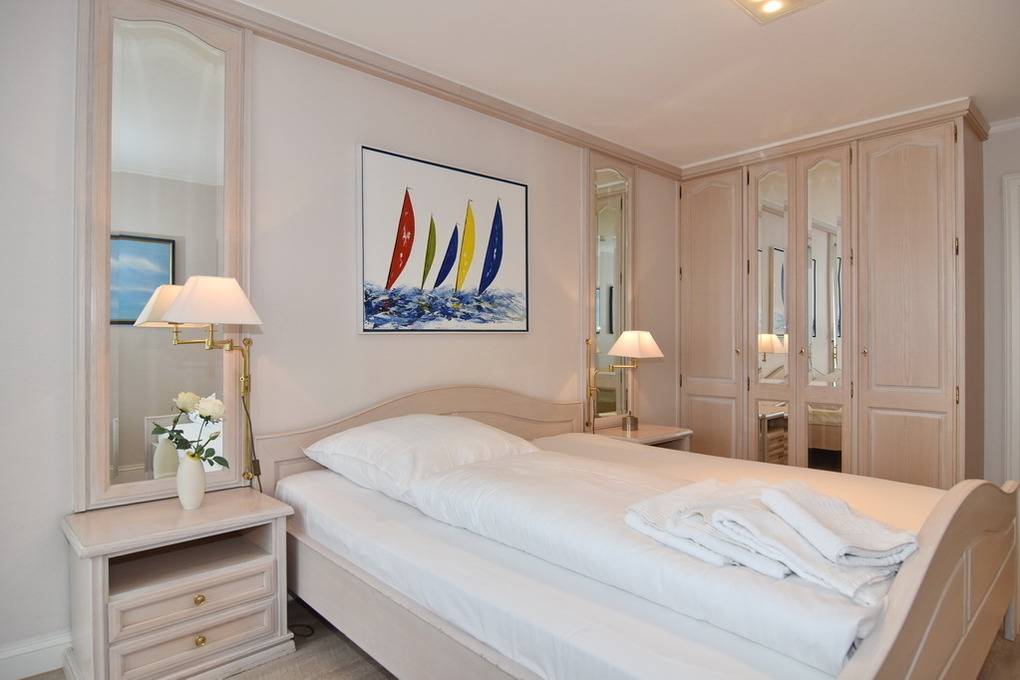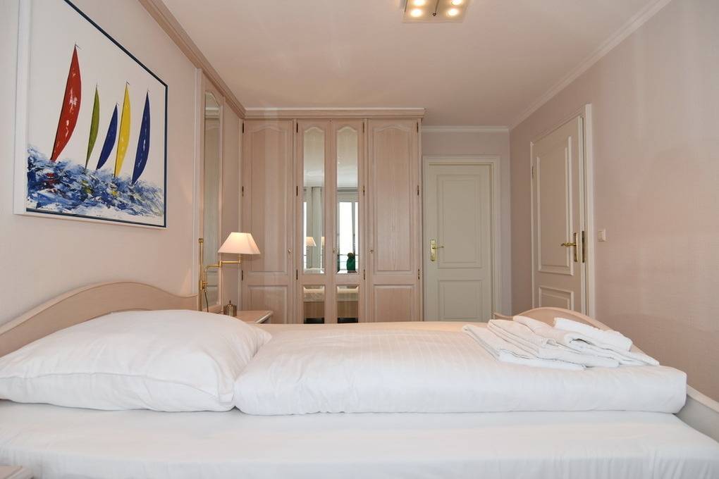 2- Zimmer-Appartement im 1. OG im Haus "Metropol" mit Meerblick, ca. 68 m², Nichtraucher. Der Wohn - und Schlafraum ist mit einem Designerboden ausgelegt. Im Wohnzimmer befindet sich ein Doppelschrankbett, eine Sitzgarnitur, ein Essplatz am Fenster mit Meerblick und einen modernen Flat-TV. Über dem Wohnbereich gelangt man auf den Westbalkon mit Balkonmöbeln. Das Bad ist mit einer bequem zugänglichen Dusche mit Sitzmöglichkeit ausgestattet, einem WC und Bidet. Die separate Küche ist über den Flur zugänglich und verfügt über einen Geschirrspüler, Backofen mit Grillfunktion und integrierter Mikrowelle . Das Schlafzimmer hat ein Doppelbett (180 x 200 cm), ein Einbauschrank und einen weiteren Westbalkon. Die Wohnung ist mit hochwertigen Tischlereinbauten ausgestattet und verfügt über W-Lan (ohne Gewähr). Tierhaltung ist nicht erlaubt. PKW-Stellplatz/Garage kann kostenpflichtig gebucht werden. Bettwäsche und Handtücher sind zur Anreise aufgezogen.