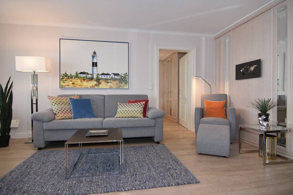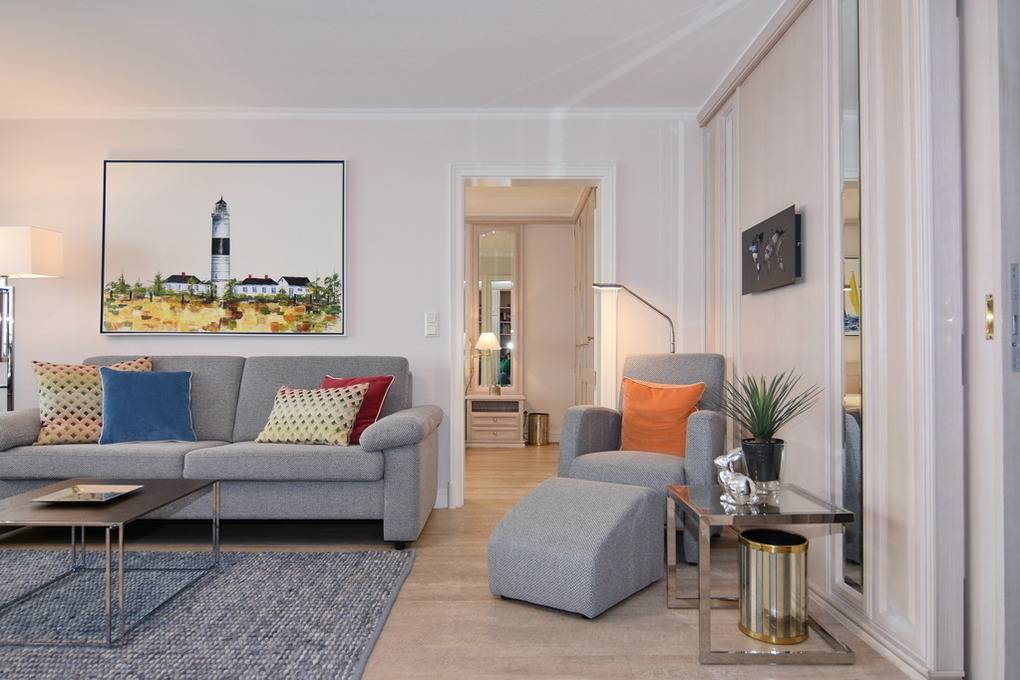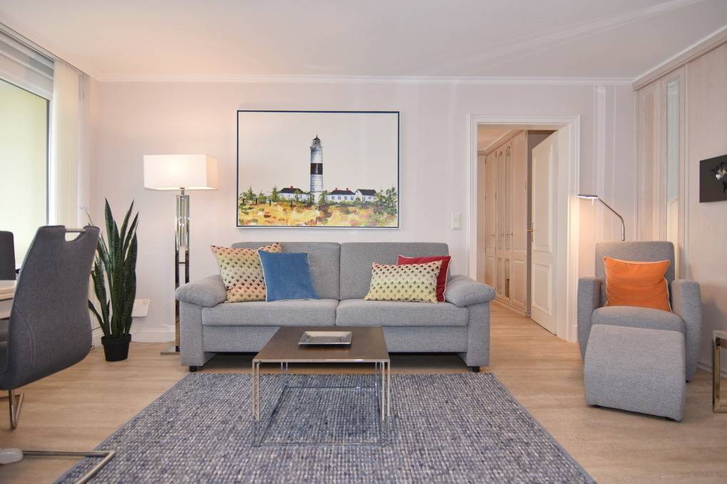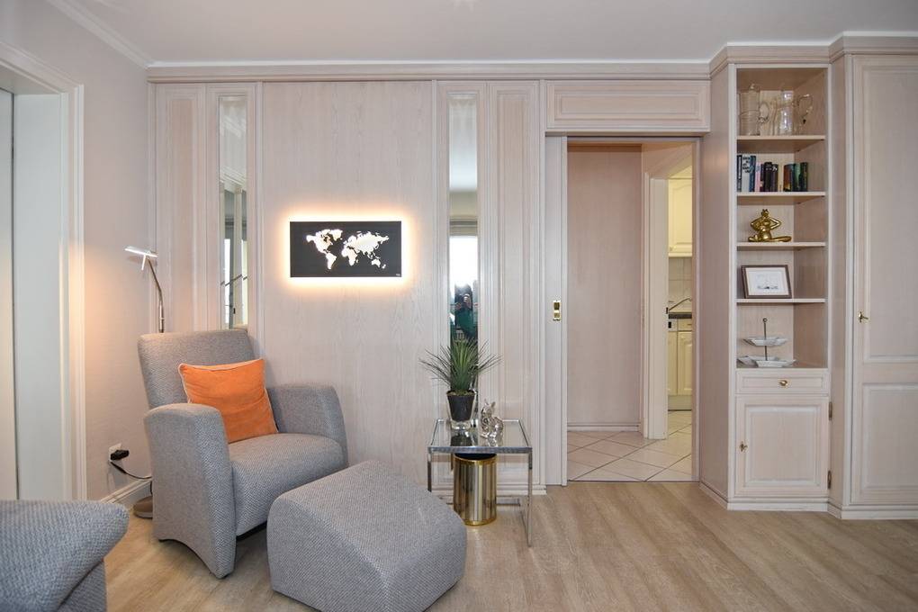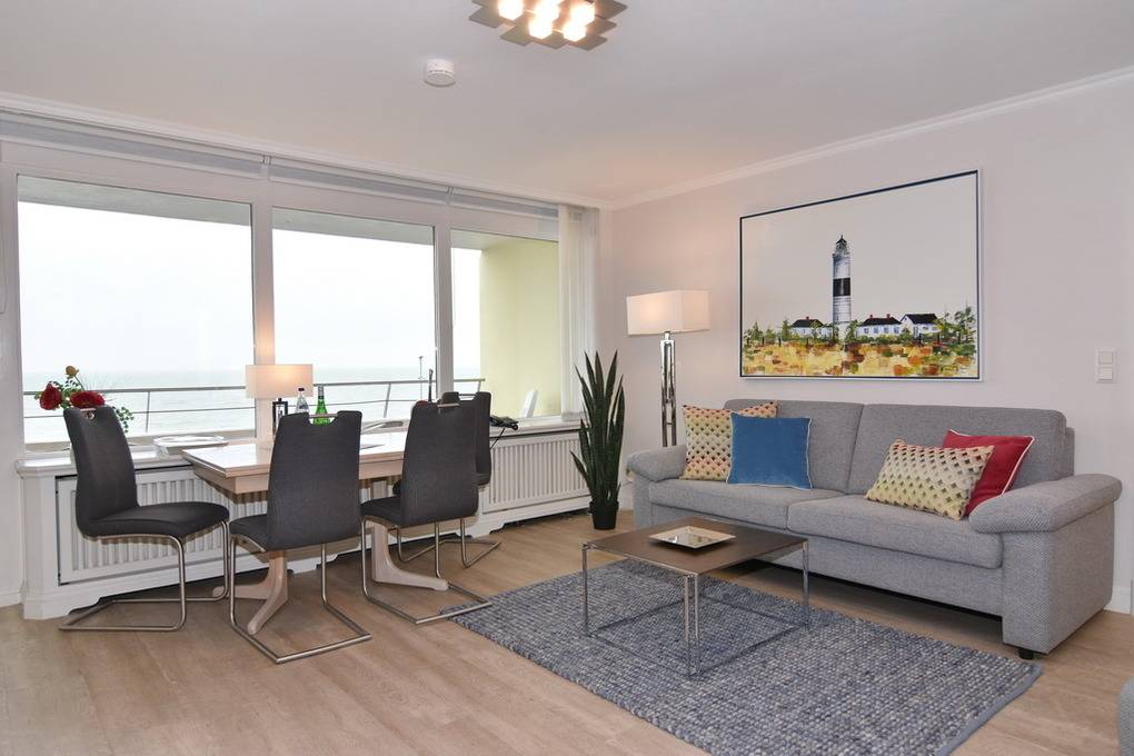 2- Zimmer-Appartement im 1. OG im Haus "Metropol" mit Meerblick, ca. 68 m², Nichtraucher. Der Wohn - und Schlafraum ist mit einem Designerboden ausgelegt. Im Wohnzimmer befindet sich ein Doppelschrankbett, eine Sitzgarnitur, ein Essplatz am Fenster mit Meerblick und einen modernen Flat-TV. Über dem Wohnbereich gelangt man auf den Westbalkon mit Balkonmöbeln. Das Bad ist mit einer bequem zugänglichen Dusche mit Sitzmöglichkeit ausgestattet, einem WC und Bidet. Die separate Küche ist über den Flur zugänglich und verfügt über einen Geschirrspüler, Backofen mit Grillfunktion und integrierter Mikrowelle . Das Schlafzimmer hat ein Doppelbett (180 x 200 cm), ein Einbauschrank und einen weiteren Westbalkon. Die Wohnung ist mit hochwertigen Tischlereinbauten ausgestattet und verfügt über W-Lan (ohne Gewähr). Tierhaltung ist nicht erlaubt. PKW-Stellplatz/Garage kann kostenpflichtig gebucht werden. Bettwäsche und Handtücher sind zur Anreise aufgezogen.