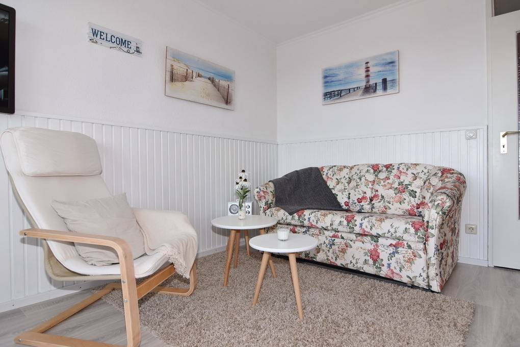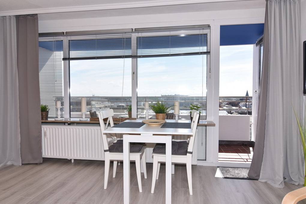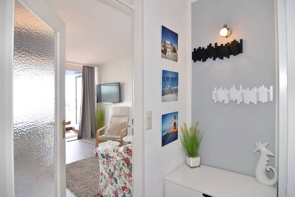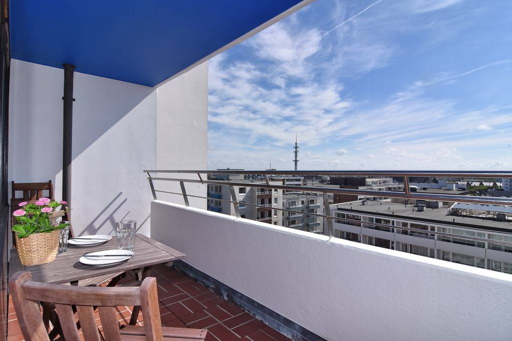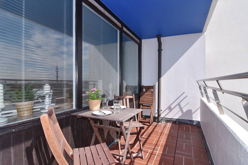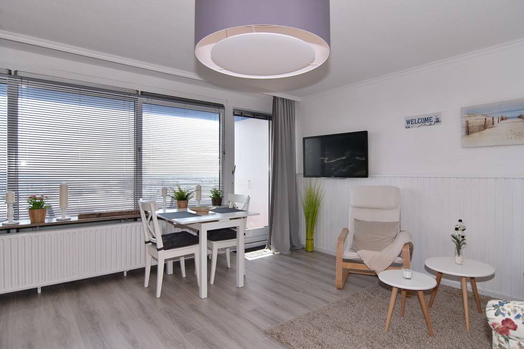 Im 7.OG des Haus "Sylter Welle" erwartet Sie eine großzügige, helle 1-Zimmer-Wohnung mit herrlichem Blick über die Insel. Die Wohnung ist perfekt für 2 Personen geeignet, die die direkte Lage an Strand, Promenade, Meerwasserschwimmbad und Innenstadt zu schätzen wissen. Die Wohnung hat einen kombinierten Wohn-/ Schlafraum mit Einzelschrankbetten (2x90x200), Couch, Sessel und Essplatz am Fenster. Flat-TV und Radio sowie hauseigenem, kostenlosen Internet-Zugang (ohne Gewähr). Vom Wohnraum aus gelangen Sie auf den Ostbalkon mit kleinem Tisch und 2 Stühlen. Flur mit Garderobe, separate Küche mit Ceranfeld und Backofen, Duschbad/ WC. Tierhaltung / Rauchen sind nicht gestattet. Bettwäsche und Handtücher sind zur Anreise aufgezogen. Ein PKW-Stellplatz kann kostenpflichtig zugebucht werden.