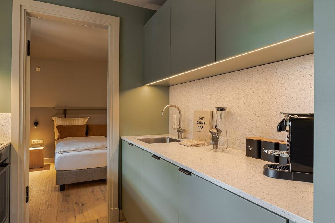 MEDIUM Die Ideale Wohneinheit für das Reisen zu Zweit. Schlafzimmer mit Dusche en Suite. Wohnzimmer mit offener, voll ausgestatteter Küchenzeile und einem Südbalkon.