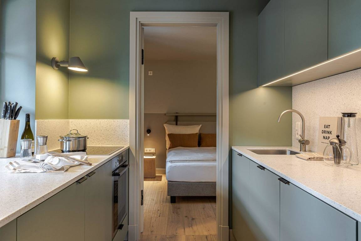 Die Ausstattung der Wohneinheit ist rund-um auf Wohlfühlen ausgelegt - handgefertigte Tischlereinbauten, hochwertige Betten, ein exklusives Einrichtungskonzept mit Balkon in der Innenstadt.