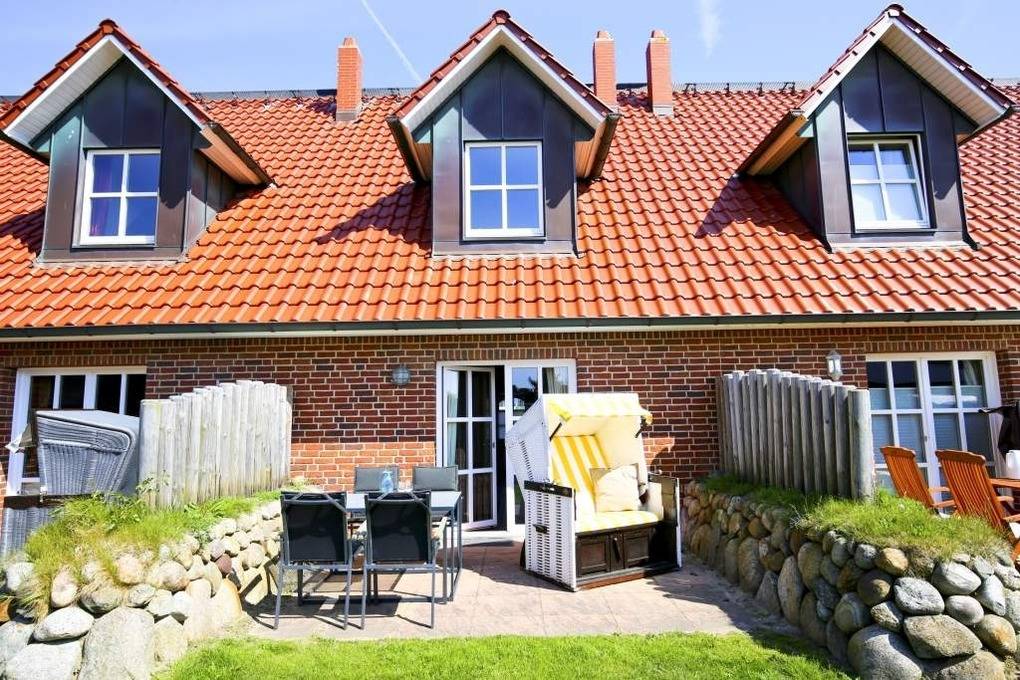 Exklusiv und großzügig präsentiert sich das Nichtraucher-Ferienhausteil mit ca. 98 qm für 6 Personen mit Südterrasse (mit Saisonstrandkorb und Gartenmöbeln).