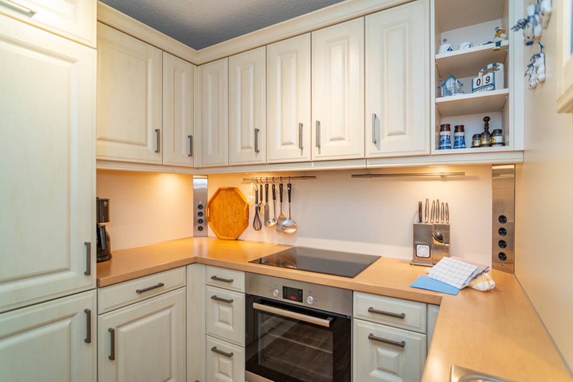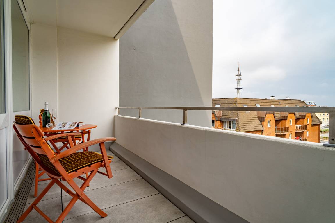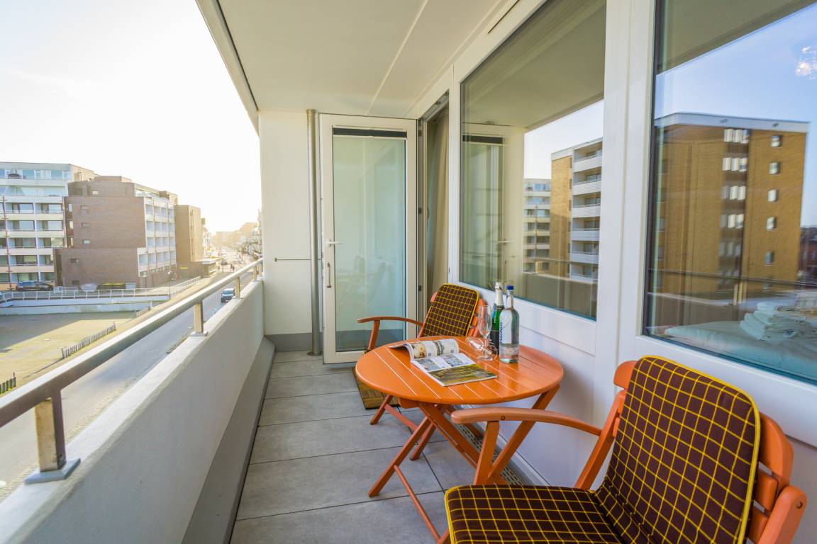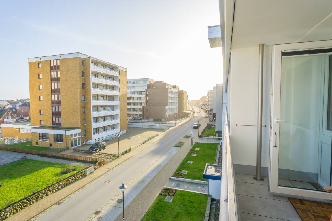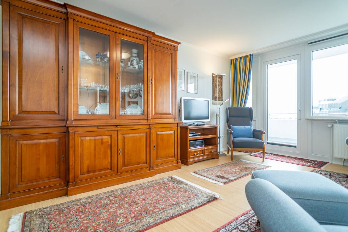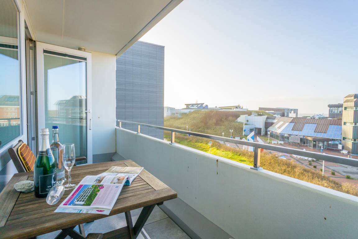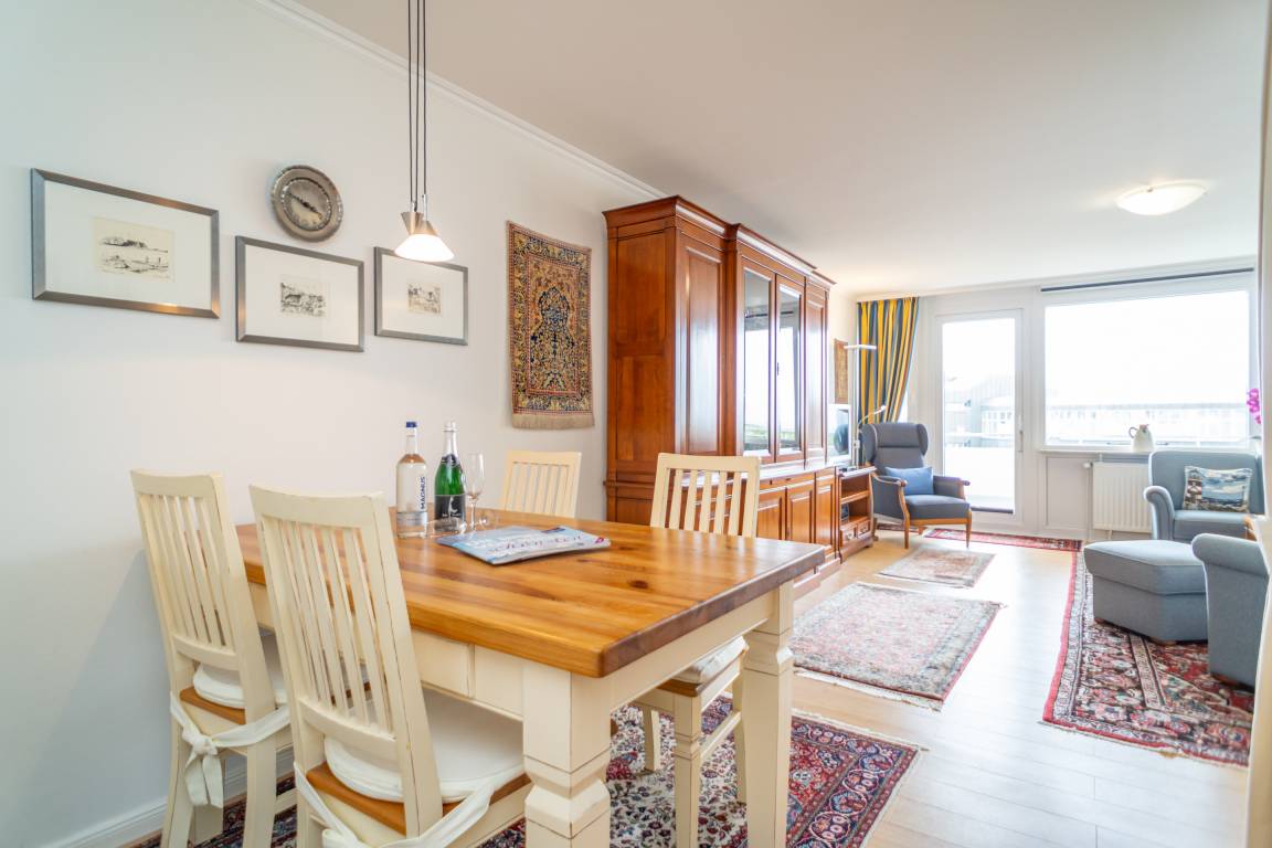 Komfortable 2-Zimmer-Nichtraucher-Ferienwohnung (ca. 76 qm) in der 3. Etage zur See- und Landseite mit Westloggia (Nachmittagssonne, mit Balkonmöbeln und Auflagen) und Ostloggia (Morgensonne, mit Balkonmöbeln und Auflagen) für max. 4 Personen.