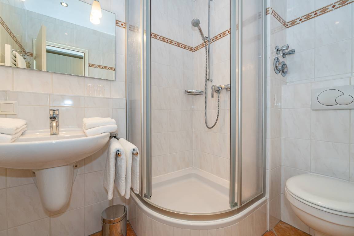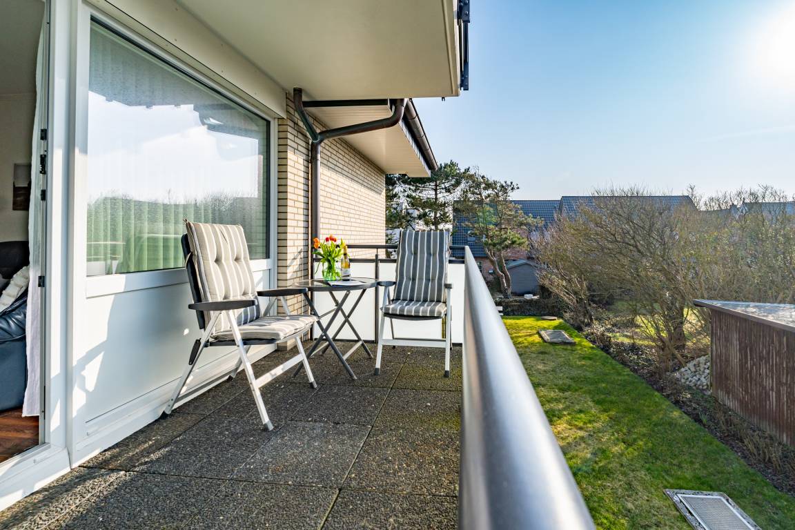 Gepflegte 1-Zimmer-Nichtraucher-Ferienwohnung (ca. 40 qm) mit optimalem Grundriss in der 1.Etage für 2 Personen mit großzügigem, sonnigen Westbalkon (mit Balkonmöbeln und Auflagen) und eigenem PKW-Stellplatz in der Tiefgarage. Vom Vorflur mit Garderobe gelangt man in den kombinierten Wohn-/Schlafraum mit Austritt zum Balkon und in das moderne, neuwertige Duschbad/WC. Der Wohn-/Schlafraum besteht aus einer gemütlichen Ledersitzgarnitur (ein Zweisitzer und ein Sessel), einer separaten Essecke und gutem Doppelbett (Boxspringbett (1,80 x 2 m) mit Einzelmatratzen + Topper, Komfortliegehöhe), Kabel-Flachbild-TV, Radio, Wlan und offener Küchenzeile. Kaffeemaschine, Wasserkocher und Toaster gehören zur Grundausstattung.