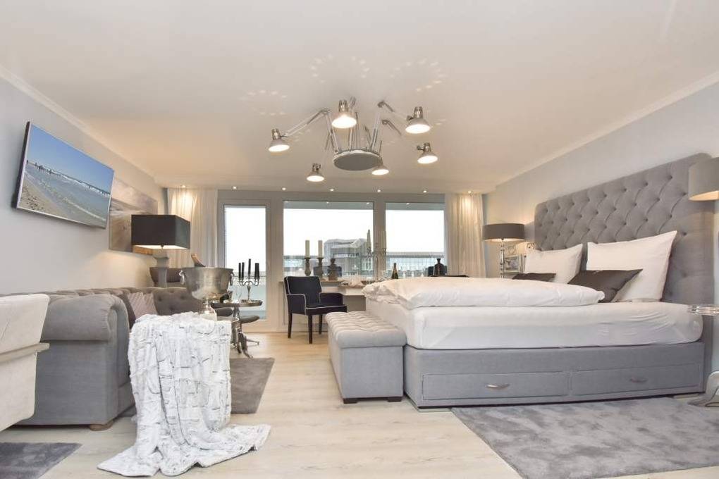 Großzügige 1-Zimmer-Nichtraucher-Ferienwohnung (ca. 40 m²) in der 2. Etage zur Seeseite mit Westloggia (Nachmittagssonne, mit Balkonmöbeln und Auflagen) für max. 2 Personen.