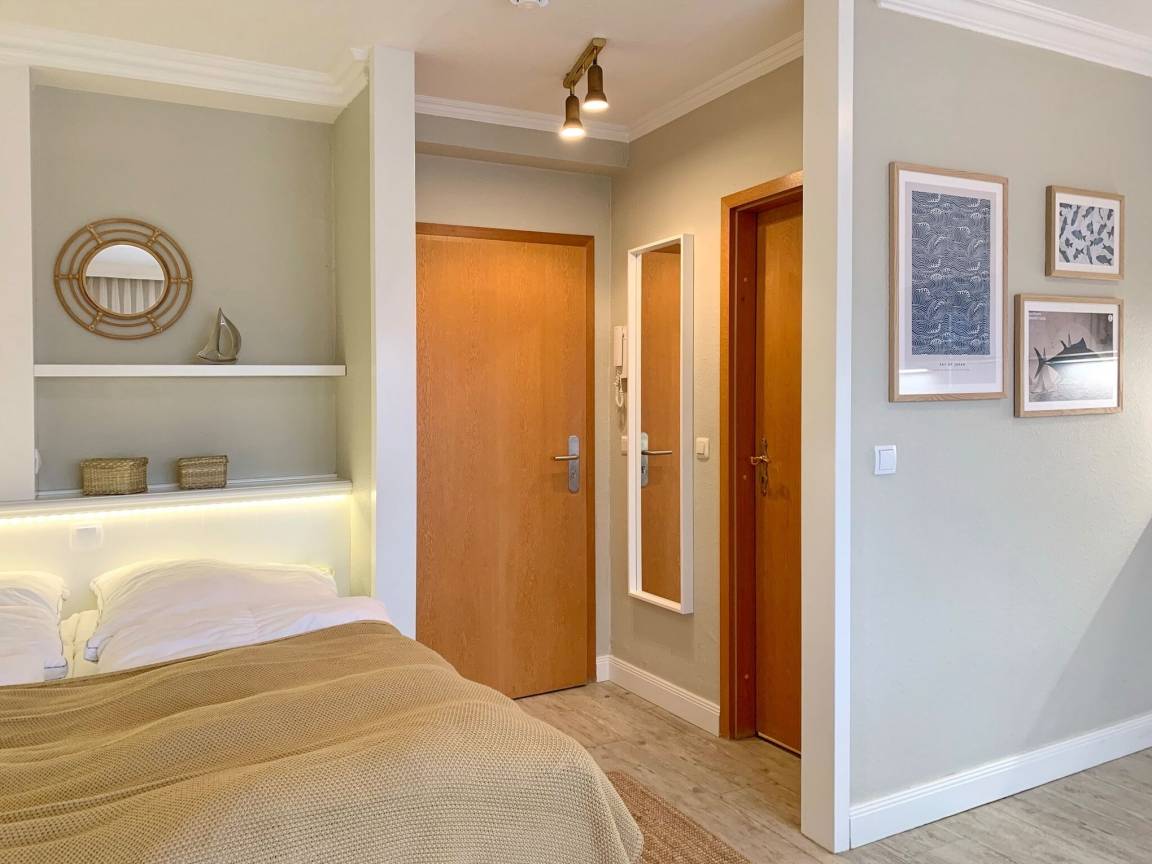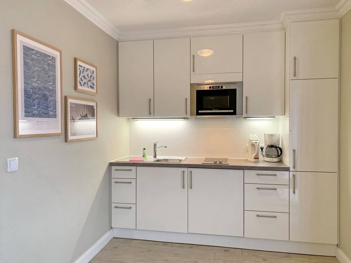 Strandnahe 1-Zimmer-Ferienwohnung im 1. Obergeschoß des Haus "Belvedere". Ca. 28m². Nichtraucher-Whg.! ]Wohn-/Schlafzimmer mit Doppelbett (2x80x200), Kleiderschrank, Ostbalkon mit Balkonmöbeln, offene Küche mit Mikrowelle und 2-Platten-Cerankochfeld, Essplatz am Fenster, Flat-TV, Radio. Duschbad/WC. Pkw-Freistellplatz 21. Rauchen und Tierhaltung sind verboten. Bettwäsche und Handtücher sind zur Anreise aufgezogen!