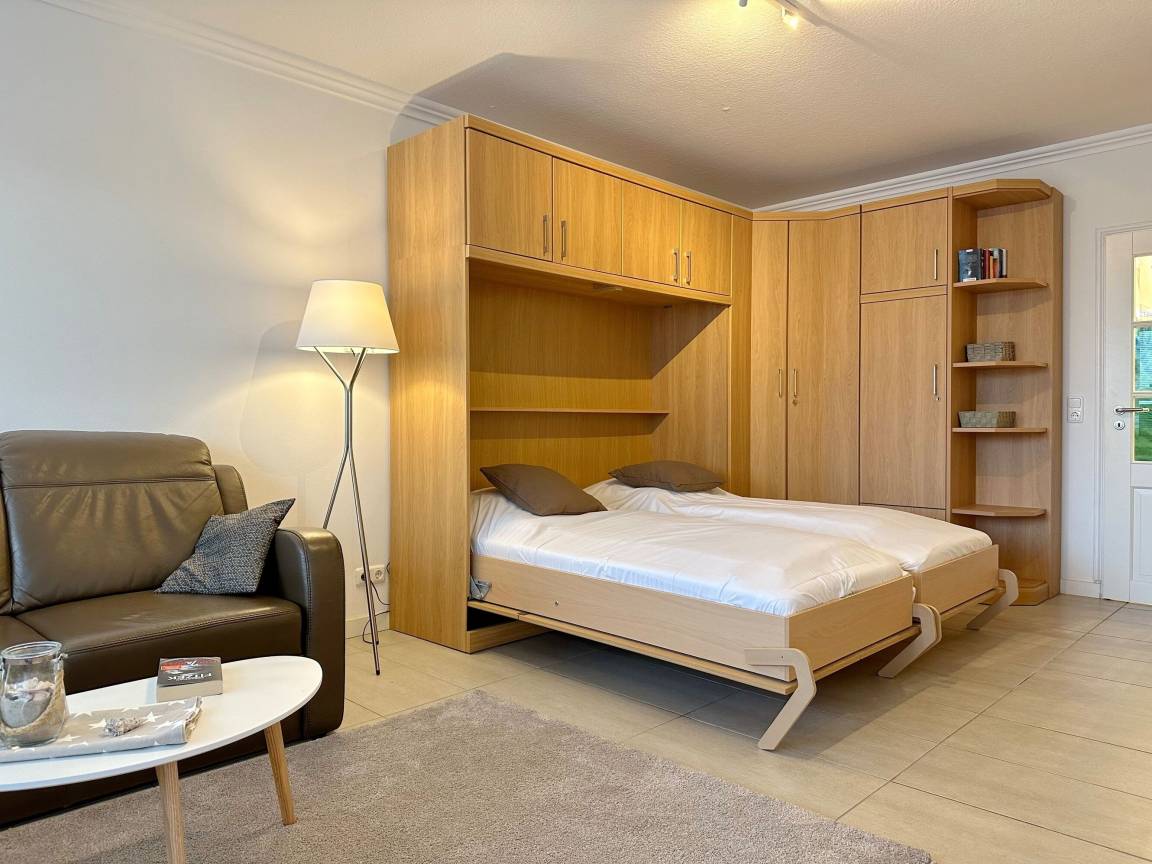 1-Zimmer-Wohnung in zentraler Lage Westerlands, nur wenige Meter bis zum Strandübergang. Kombinierter Wohn-/ Schlafraum mit Einzelschrankbetten, Essplatz und Sofa, TV und WLAN, Zugang zum möblierten Südbalkon. Im Flurbereich der Wohnung befindet sich die Garderobe und die neue Küchenzeile mit Induktionsherd, Geschirrspüler, Backofen und Kühlschrank mit Gefrierfach. Geräumiges Duschbad / WC mit Fenster. Tiefgaragenstellplatz inklusive. Fahrstuhl im Haus vorhanden und ebenerdig zu erreichen. Zur Wohnung gehört der Garagenstellplatz Nr. 139.
