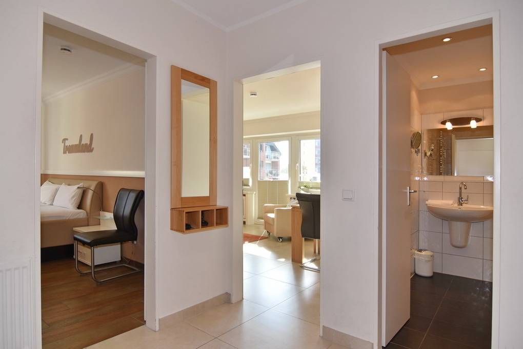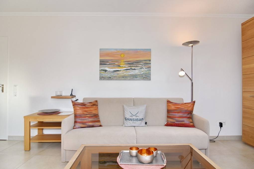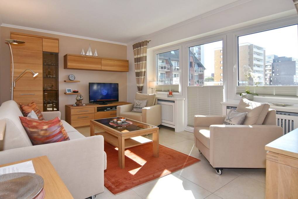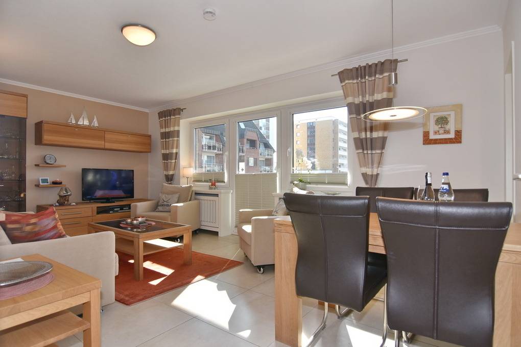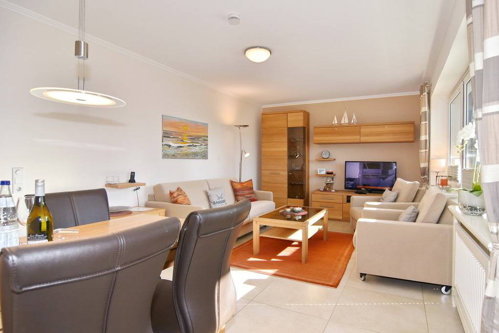 Schönes 2-Zimmer-Apartment in direkter Strandnähe. Ca. 55.0 qm im Hochparterre. Nichtraucherwohnung. Der Wohnraum ist mit einem gemütlichen Schlafsofa (1,80x 2,00m), 1 Sessel, einem Essplatz mit 4 Schwingstühlen, Flat-TV, Radio, DVD-Player und Internetanschluss über UMTS (ohne Gewähr) ausgestattet. Der Balkon ist nach Süden ausgerichtet. Vom Wohnzimmer gelangen Sie in die moderne Küche mit Geschirrspüler, Backofen, Kühlschrank mit 3*Sterne Gefrierfach sowie einem 4-Platten-Herd. Das separate Schlafzimmer ist mit einem Polsterbett (1,80m x 2,00m mit 2 Einzelmatratzen), Kleiderschrank und Flat-TV ausgestattet. Modernes Badezimmer mit Dusche, WC, Kosmetikspiegel und Föhn.