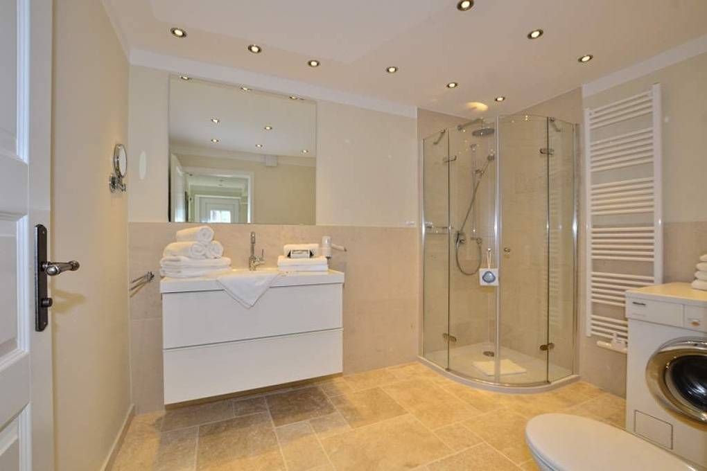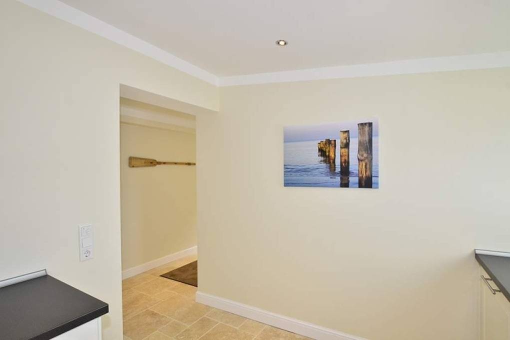 Vom Vorflur mit Garderobe gelangt man in das Wohn-/Esszimmer mit offener Küche (Geschirrspüler, Induktionskochfeld, Mikrowelle, Backofen, Kühlschrank, Kaffeemaschine, Nespresso Kapselmaschine etc.). Das Wohnzimmer ist mit einer gemütlichen Couch, Flachbild-TV, W-Lan und Telefonflat ins Deutsche Festnetz (Handynummern gesperrt) ausgestattet. Im großen Doppelschlafzimmer befinden sich ein Doppelbett (1,80 x 2,00 m, Bettdecken in Überlänge). Das kleinere Schlafzimmer verfügt über ein 1,40 x 2,00 m breites Bett (Bettdecken in Überlänge). Im geräumigen Duschbad mit großem Waschtisch und WC befindet sich außerdem eine Waschmaschine.