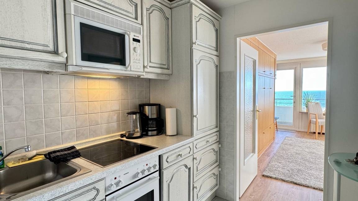 Dieses helle, gut ausgestattete 1-Zimmer-Nichtraucher-Appartement befindet sich in der 6. Etage des Hauses "Haus am Meer" und hat ca. 34 m² Wohnfläche. Vom Westbalkon hat man einen traumhaften Seeblick. Eine gut ausgestattete Küche und ein modernes Bad runden das Bild ab.