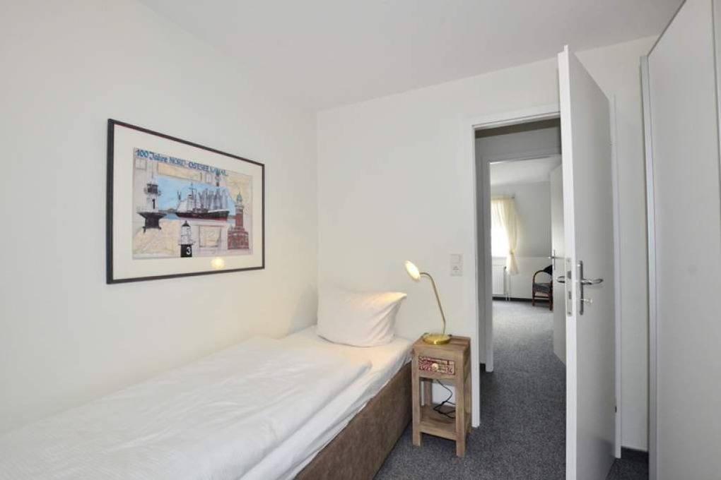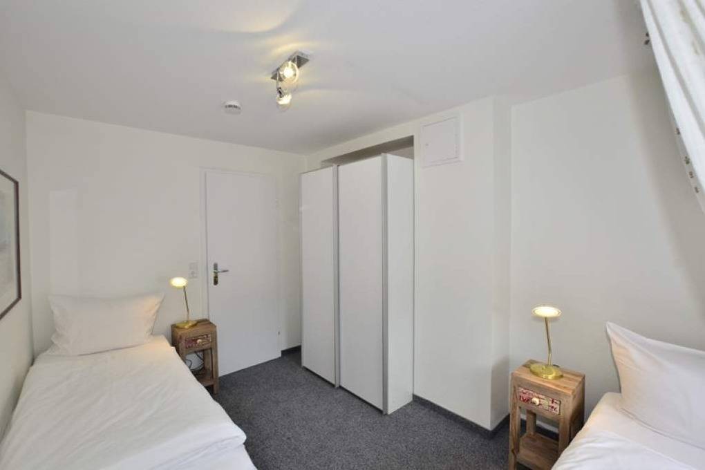 Im Appartement befinden sich ein Doppel- und ein Zweibett-Schlafzimmer. Das große Schlafzimmer mit gutem Doppelbett (2 m x 1,80 m, mit zwei guten Einzelmatratzen, das kleinere Schlafzimmer mit 2 über Eck stehenden Einzelbetten.
