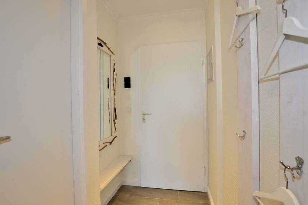 Vom Vorflur mit Garderobe gelangt man in das Wohnzimmer und in das neue Duschbad/WC.