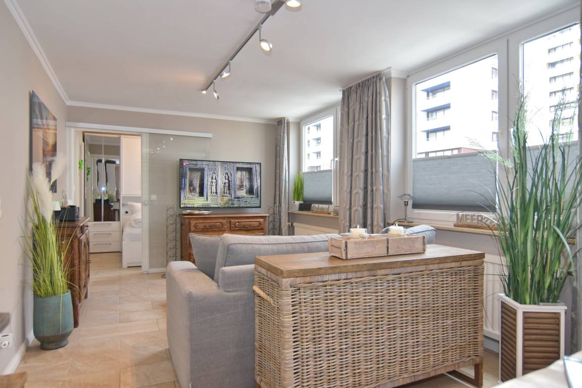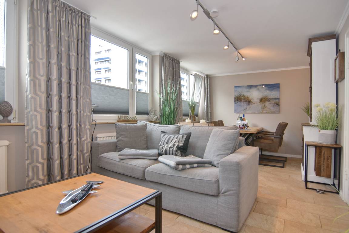Traumhaft schöne 2-Zimmer-Wohung im Herzen von Westerland mit dem vielversprechenden Namen "Meeresrauschen" - sie befindet sich in der 3. Etage zur Westseite in einem mehrstöckigen Appartementhaus in unmittelbarer Nähe des Hauptstrandes und den Fußgängerzonen mit vielen kleinen Cafés, Boutiquen und Souvenirshops. In der Zeit vom ca. 01. April bis 31. Oktober steht den Gästen dieser Wohnung ein kostenloser Strandkorb an der Promenade zur Verfügung.