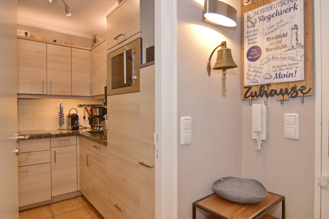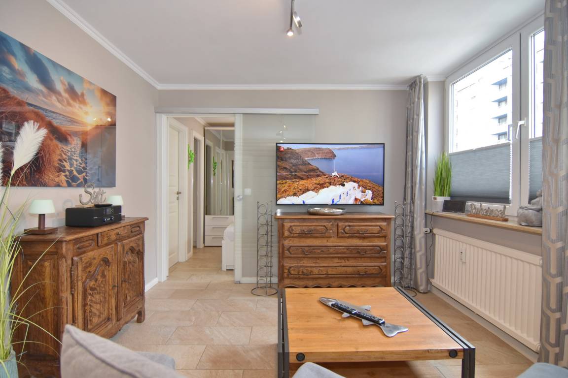 Die Wohnung ist mit viel Liebe zum Detail und vielen kleinen Accessoires eingerichtet. Modern und antik wird hier gekonnt kombiniert. Der Wohnraum ist mit einer gemütlichen Couchgarnitur und einem tollen großzügigem Echtholz-Essplatz mit 4 Polsterstühlen ausgestattet. Im angrenzenden Schlafzimmer befindet sich ein Doppelbett und viel Stauraum und noch ein zusätzlicher kleiner Raum mit eingebauten Schränken. Die separate Küche ist voll ausgestattet mit einem 4 Platten-Induktionskochfeld, einer Mikrowelle, einem Geschirrspüler und einem Kühlschrank mit integriertem Gefrierfach. Duschbad/WC mit Halbrundtusche, großzügigem Waschtisch und Handtuchheizkörper. Nichtraucherwohnung. Wohnungsgröße ca. 45 m². Ein Hotspot im Haus ermöglicht Ihnen einen kabellosen und kostenfreien Zugang zum Internet (WEG-AD3 - Passwortfrei - ohne Gewähr). Ein kleiner Hund darf nach kostenpflichiger Anmeldung mit in die Wohnung.