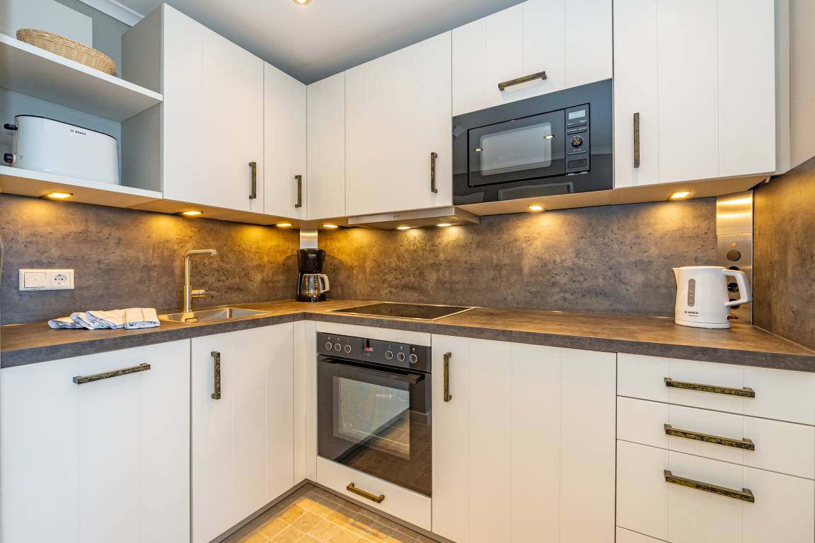 Die neue Küche ist mit Geschirrspüler, Nespresso-Maschine, Mikrowelle, Backofen, Ceranfeld und Kühlschrank (mit 3*Gefrierfach) ausgestattet. Kaffeemaschine, Wasserkocher und Toaster gehören zur Grundausstattung.