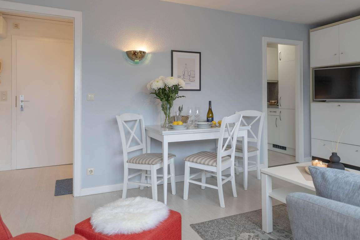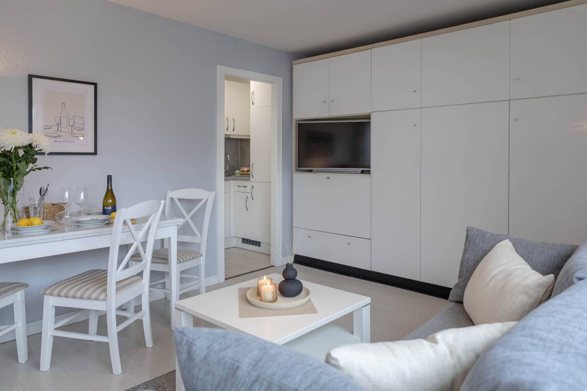 Preiswert, hell und zentral – das Sea -Loft in Westerland bietet alles für einen perfekten Sylt-Urlaub : ein Wohnzimmer mit Balkon, eine separate Küche mit Geschirrspüler, ein Schlafzimmer mit Doppelbett und ein modernes Duschbad. Stellplatz und Fahrradkeller inklusive. Der Strand und die Friedrichstraße mit ihren vielen Cafés, Restaurants und Shops sind nur wenige Minuten entfernt.