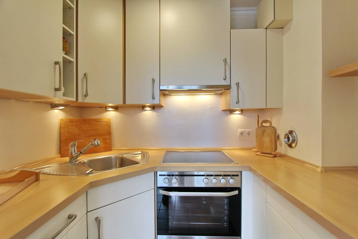 Die offene Küche ist modern und vollständig ausgestattet mit Cerankochfeld und Backofen – perfekt, um sich selbst kulinarisch zu verwöhnen. Das Schlafzimmer verfügt über ein bequemes Doppelbett, das für erholsame Nächte sorgt. Das Badezimmer ist stilvoll gestaltet mit einer Dusche, WC und einem praktischen Handtuchheizkörper.