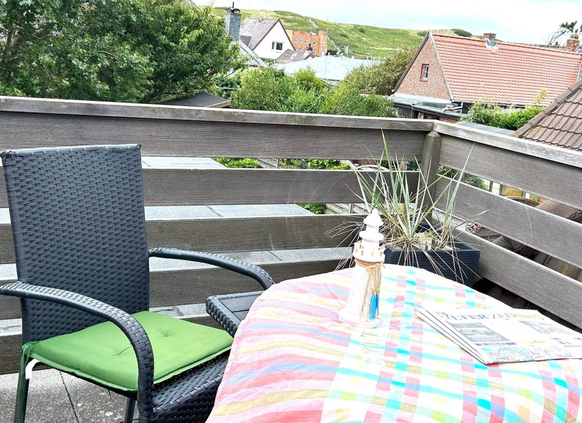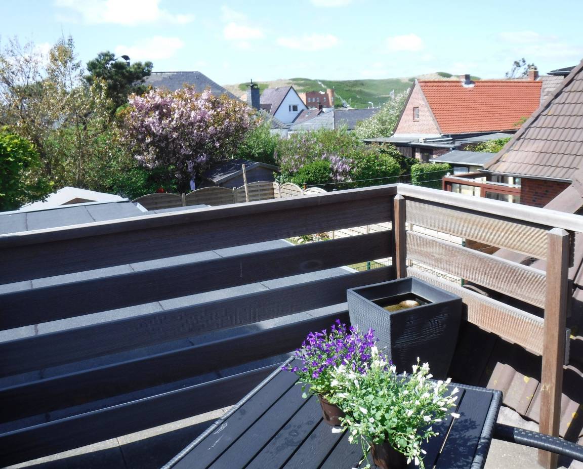 Das Appartement hat einen schönen Balkon nach Süd/Westen mit Blick auf die Dünen.