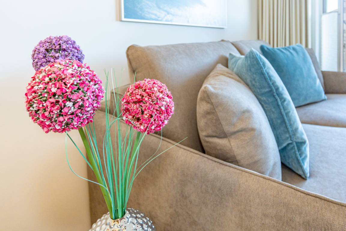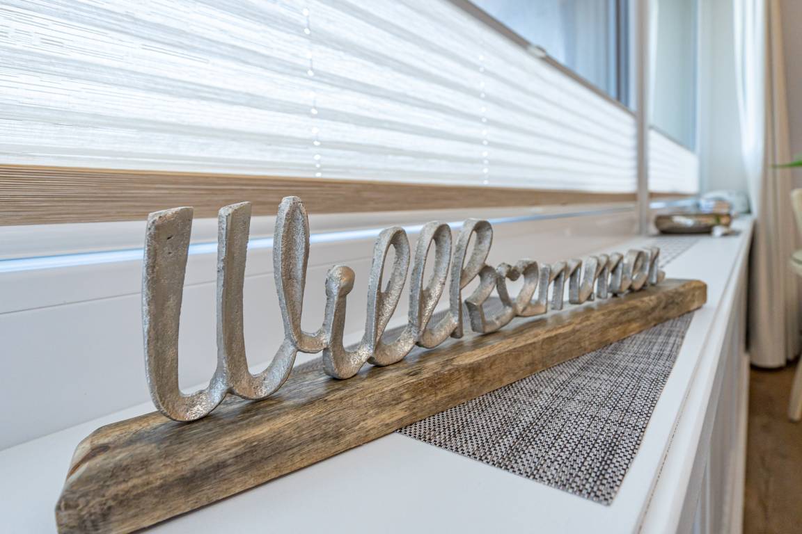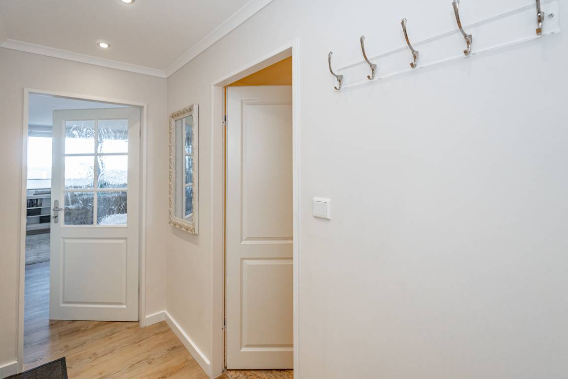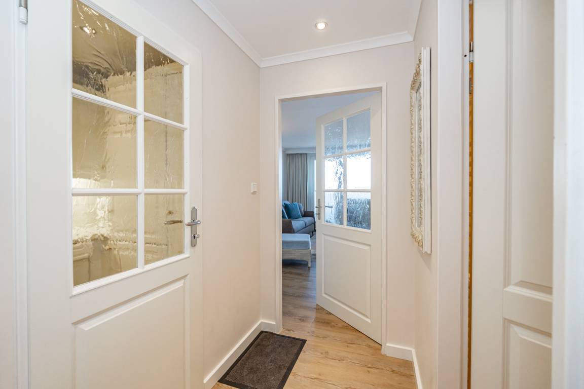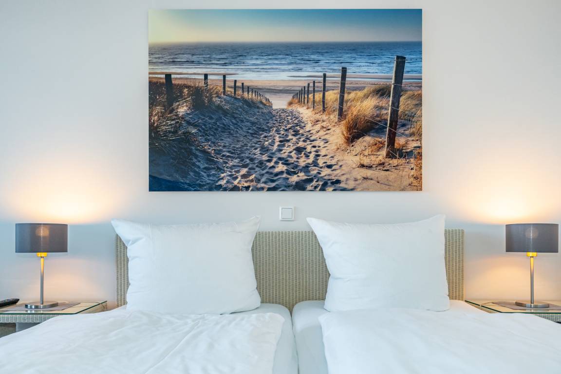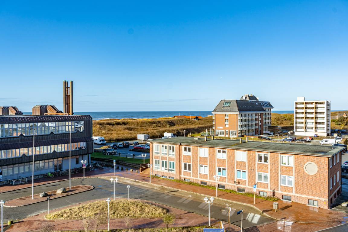 Geschmackvoll ausgestattete 1-Zimmer-Nichtraucher-Ferienwohnung (ca. 40 qm) mit Laminatboden in der 4. Etage zur Seeseite mit schönem Meerblick und Westloggia (Nachmittagssonne, mit Balkonmöbeln und Auflagen).
