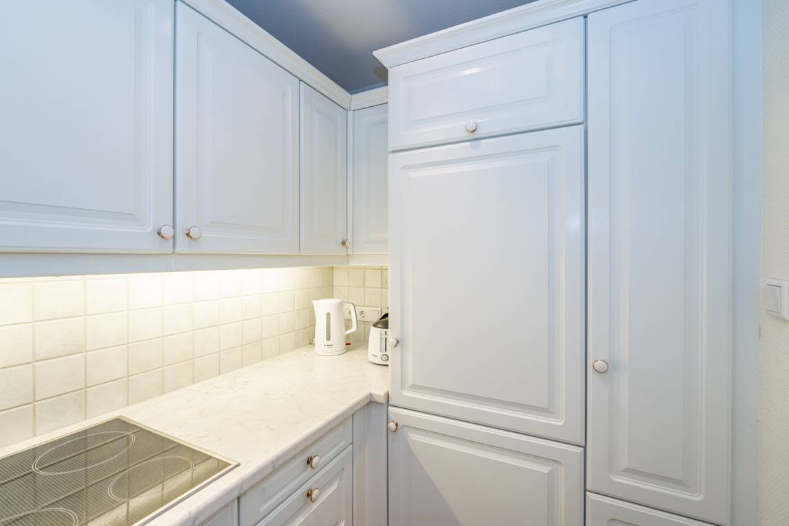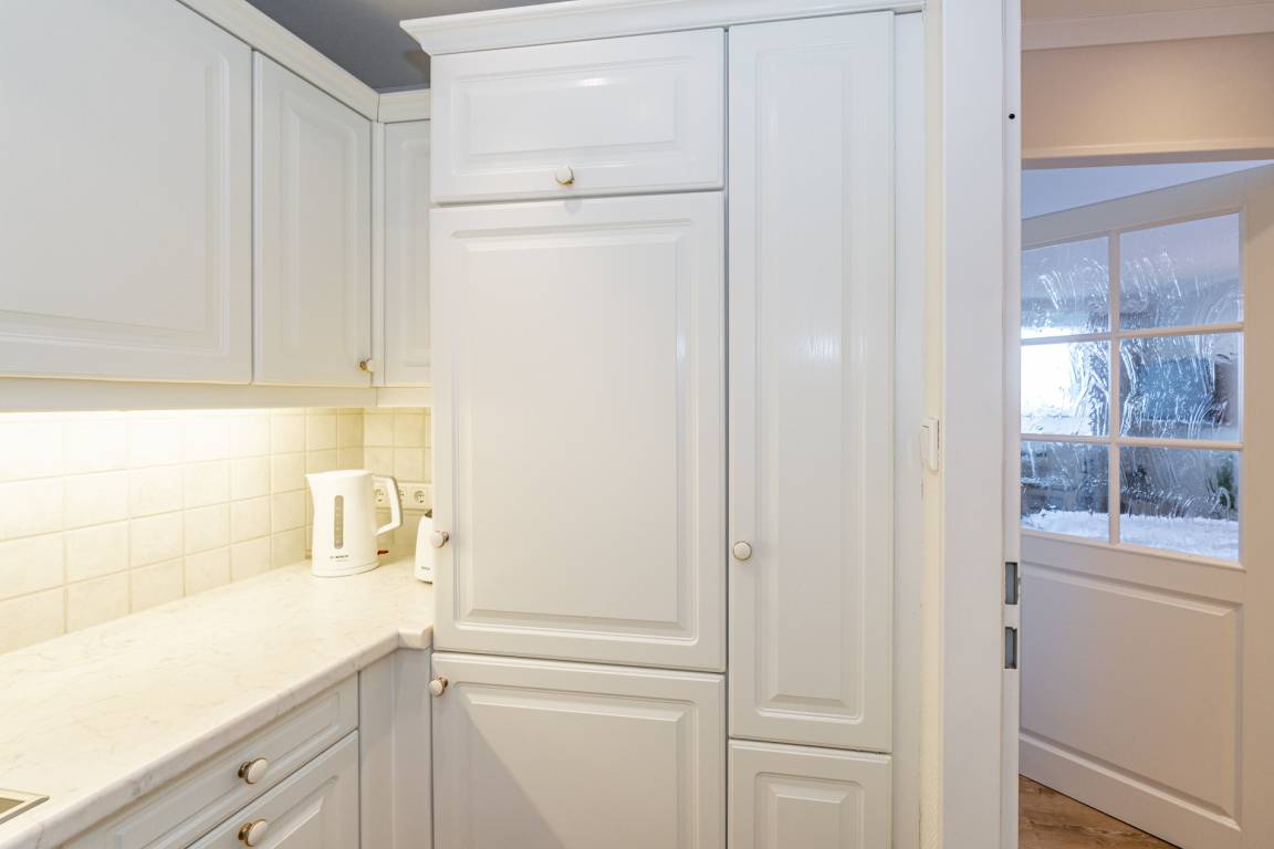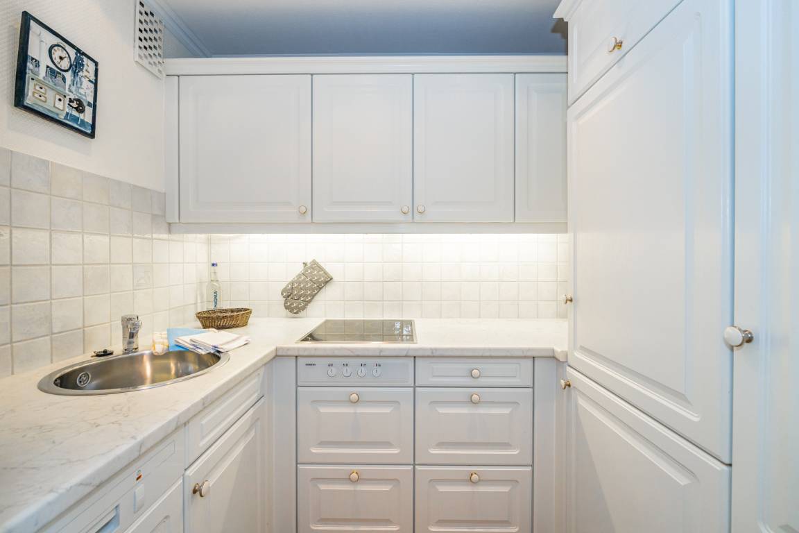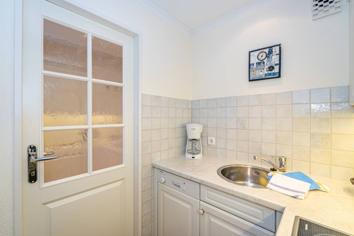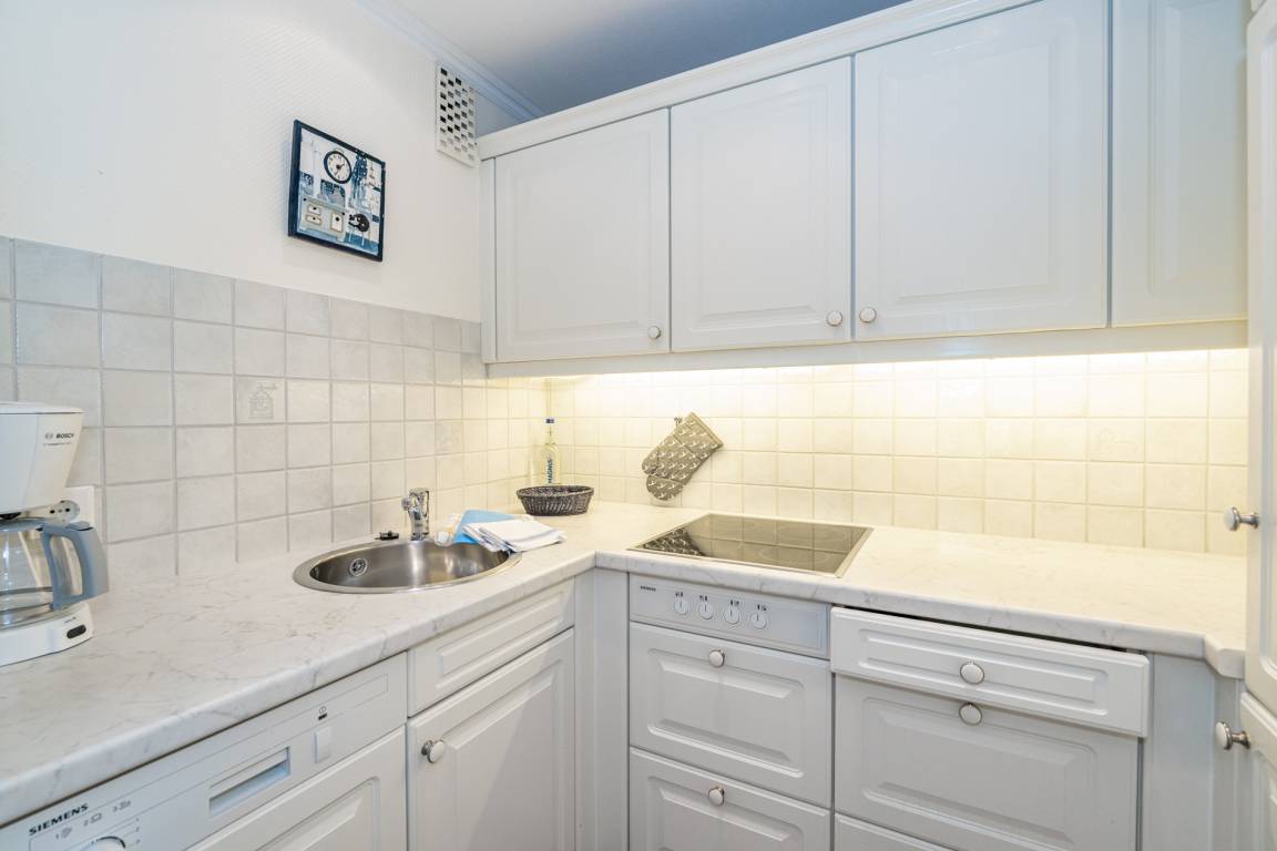 Die separate Küche hat einen Geschirrspüler, eine Nespresso-Maschine, ein Cerankochfeld und einen Kühlschrank mit 3*-Gefrierfach. Kaffeemaschine, Wasserkocher und Toaster gehören zur Grundausstattung.