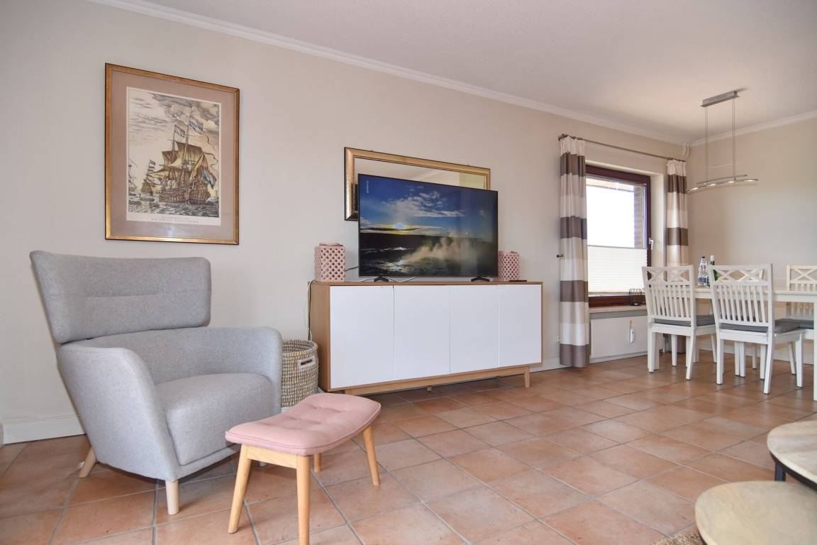 Großzügige 2-Zimmer-Wohnung in TOP-Lage. Direkt hinter der Düne liegt das Apartmenthaus "Belvedere". Von hier aus sind es nur noch wenige Schritte bis ans Meer und in die Innenstadt laufen Sie ca. 2 Minuten. Die Wohnung befindet sich im 1. OG des Hauses, hat ein großzügiges Wohnzimmer mit Zugang zum Südwestbalkon, offener Küche und Essplatz sowie einem Schlafzimmer mit Doppelbett und Einbauschränken und ein Duschbad/WC. Der Balkon ist möbliert. Die Sitzecke besteht aus einer 3-Sitzer-Couch und einem Sessel mit Fusshocker. Die offene Küche verfügt über Mikrowelle und Geschirrspüler. Zur Wohnung gehört der Tiefgaragenstellplatz Nr. 12. Tierhaltung und Rauchen sind in der Wohnung nicht gestattet. Bettwäsche und Handtücher sind zur Anreise aufgezogen!