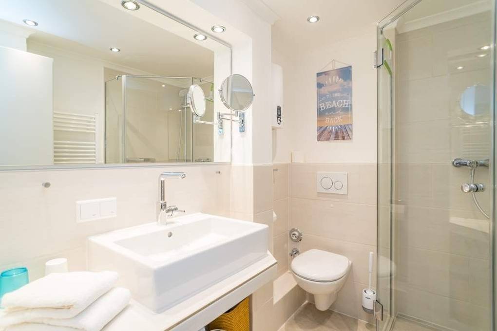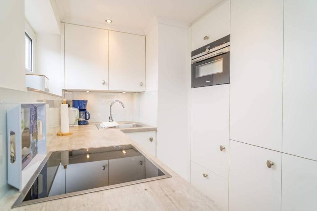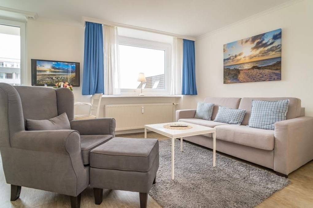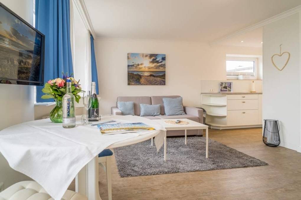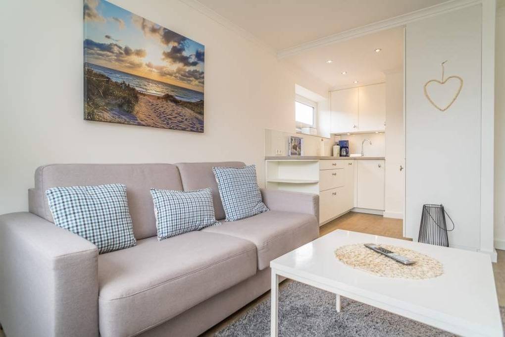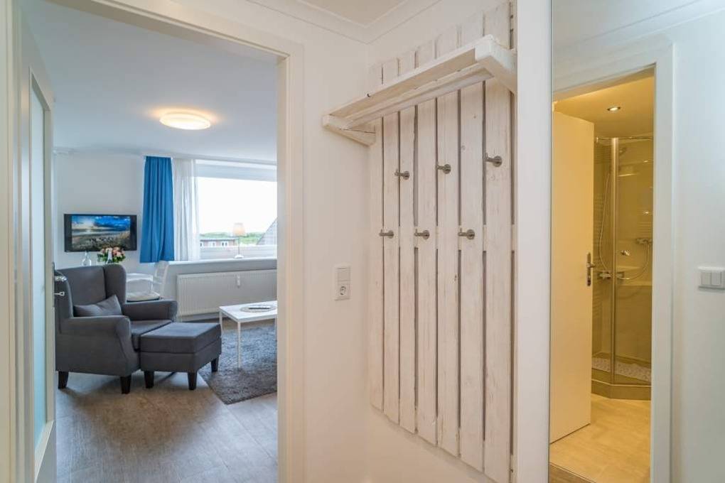 1-Zimmer-Nichtraucher-Ferienwohnung (ca. 32 qm) zur Westseite in der 3. Etage mit kleinem Meerblick und Westbalkon.