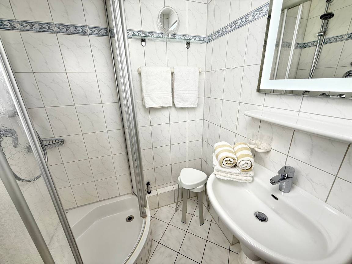 Im Duschbad finden Sie Dusche, WC und Waschtisch – funktional und gepflegt.
