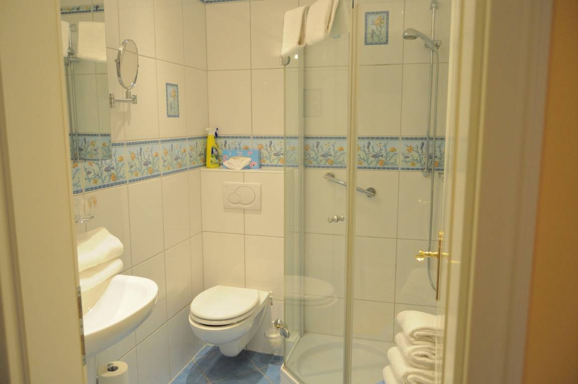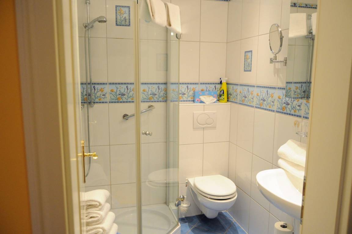 Am Esstisch haben 4-5 Personen bequem Platz. Beide Duschbäder ist sind hell gefliest und verfügen über Handtuchwärmer, Spiegelschrank, Schminkspiegel und Föns. Waschmaschine und Trockner sind vorhanden. Sämtliche Fußböden sind gefliest und mit Fußbodenheizung ausgestattet. SAT-TVs(Flat), CD/DVD-Player, kl. Stereoanlage sowie Telefon und kostenfreier Internetzugang (Wlan) sind ebenfalls vorhanden.