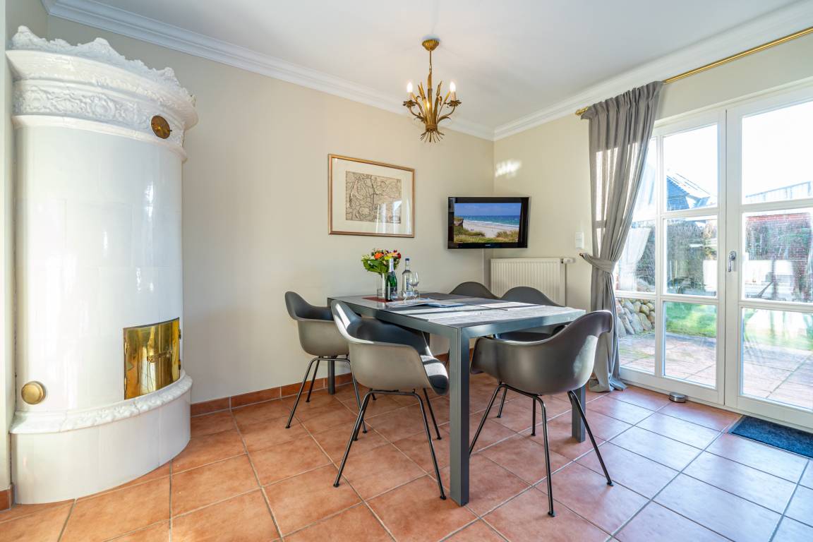 Das Wohnzimmer ist mit einer gemütlichen Couchgarnitur (Zweisitzer-Couch und zwei urgemütliche Ohrensessel), Essplatz für 6 Personen, weißem antiken Kachelofen, großem Kabel-Flachbild-TV, Radio/CD-Player und einer cremefarbenen Küche im Landhausstil ausgestattet. Kostenlose Internetnutzung per W-Lan (ohne Gewähr).