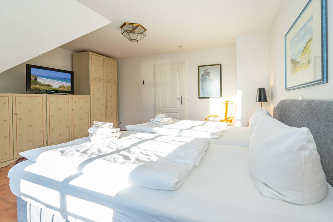 Zusätzlich gibt es noch ein weiteres, kleines Schlafzimmer mit zwei Einzelbetten (0,90 x 2,00 m) sowie TV.