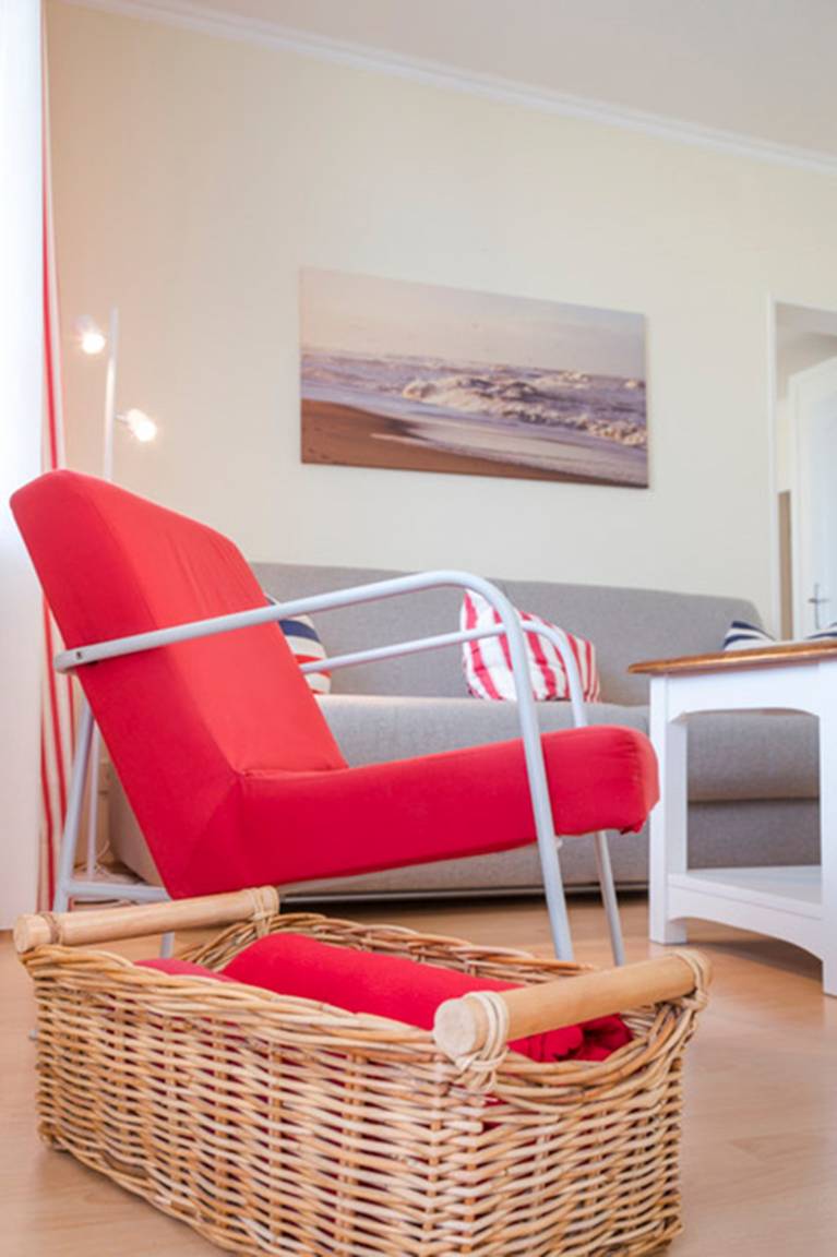 Der helle Wohnraum mit der großzügigen Terrasse und seinem tollen Blick bis zum Leuchtturm von Kampen, bietet ein besonderes Highlight. Die Wohnung ist komplett mit Laminatboden ausgelegt. Internet-Radio , großer Flat TV mit DVD-Player, Kabel TV .
