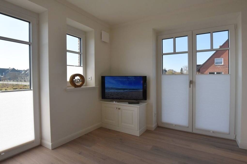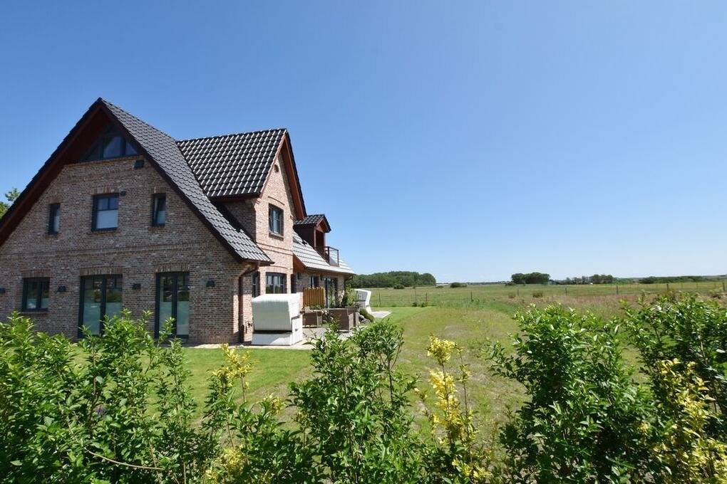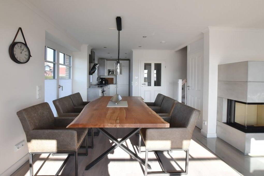 Im Ostertresker 13 ist eine exklusive Doppelhaushälfte für 5 Personen in ruhiger Ortsrandlage entstanden mit freiem Feldblick. Der Wohnbereich mit bodentiefen Fenstern und offener Küche ist modern und hell gestaltet. Echtholzfussböden und ein Kamin sorgen für friesische Gemütlichkeit. Im OG und SB befinden sich 3 Schlafzimmer für insgesamt 5 Personen. Das Haus verfügt über 2 Bäder, Garten und Terrasse in südlicher Ausrichtung und einen PKW-Stellplatz auf dem Grundstück.