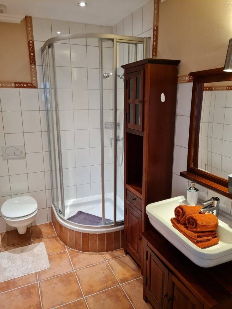 Die Ferienwohnung befindet sich im 1. Obergeschoss mit Ausblick auf die Friedrichstraße. Holzboden, helle Möbel und nicht zuletzt der besondere Charme des Hauses gehören zu den Räumlichkeiten. Die Badezimmer in unserem Gästehaus sind alle topmodern und selbstverständlich in sehr gepflegtem Zustand.