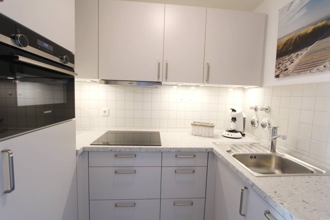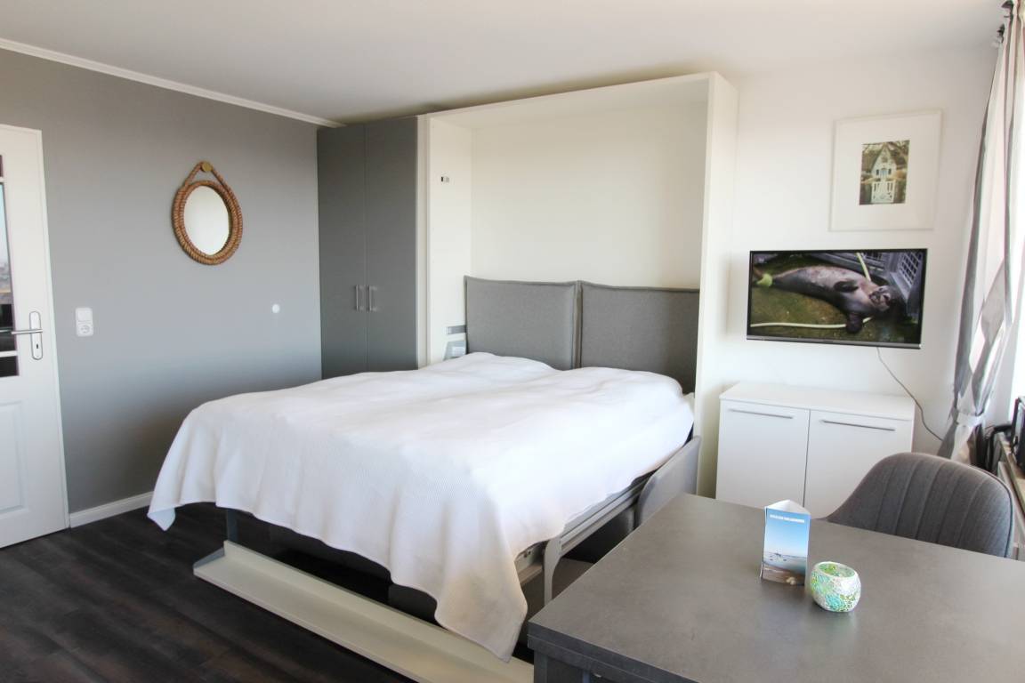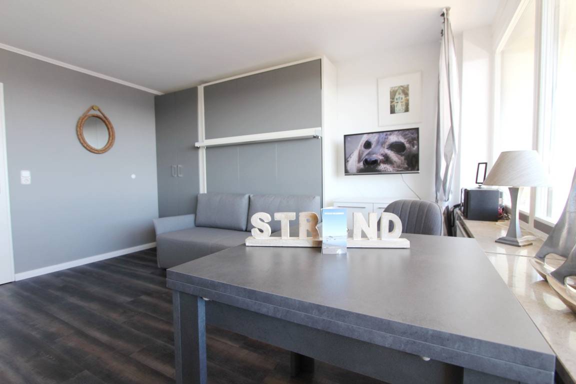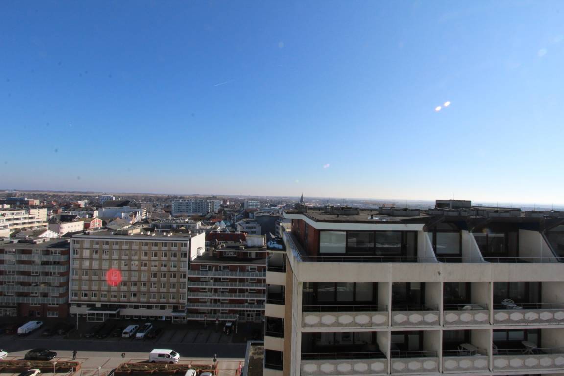 Einzimmerwohnung in der 9. Etage im Haus Metropol mit herrlichem Weitblick über die Insel und die Stadt Westerland. Bei klarem Wetter können sie bis zum nordfriesischen Wattenmeer und dem Festland schauen. Der kombinierte Wohn-/Schlafraum hat einen vorgelagerten großen Ostbalkon mit Balkonmöbeln und Auflagen. Ein Doppelschrankbett, ein Essplatz mit 2 Stühlen am Fenster, eine Couch und 2 Fernsehsessel mit Fusshockern und viel Schrankfläche, für Ihre persönlichen Dinge, steht ihnen zur Verfügung. Im Wohnraum wurde Designboden verlegt. Das Badezimmer hat eine Dusche, einen Duschhocker und einen Handtuchtrockner. In der separaten Küche mit Mikrowellen Backkombination, Ceranfeld mit 4 Herdplatten, Geschirrspüler und zusätzlicher Senseo Padmaschine können sie sich selbst verpflegen. Zur technischen Ausstattung dieser Wohnung gehört: ein Flachbildfernseher und ein Radio mit CD Player. Das freie WLAN Netzwerk Hotspot (WEG Haus Metropol - Passwortfrei - ohne Gewähr) steht ihnen kostenfrei zur Verfügung. Wohnungsgröße ca. 38 m².