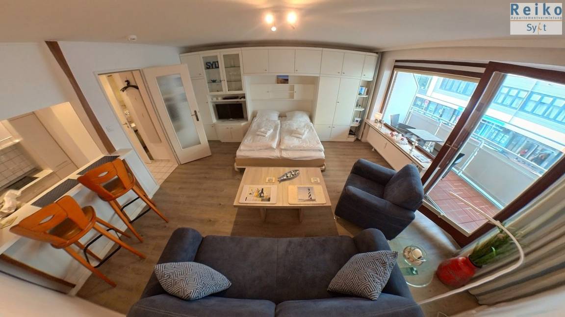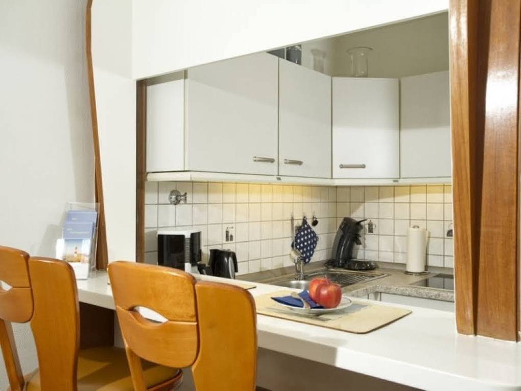 Das gemütlich ausgestattete Appartement im 1. Geschoss ist ca. 34 m² und bietet Platz für 2 Personen. Das Wohnzimmer ist mit TV, Blu-Ray-Player und Radiowecker ausgestattet, TV-Empfang erfolgt via Magenta-TV. Hier befindet sich auch das Kompfort-Schrankbett für 2 Personen. Vom Wohnzimmer aus erreichen Sie den sonnigen Balkon, die Küche und das moderne Bad mit Walk-In Dusche.
