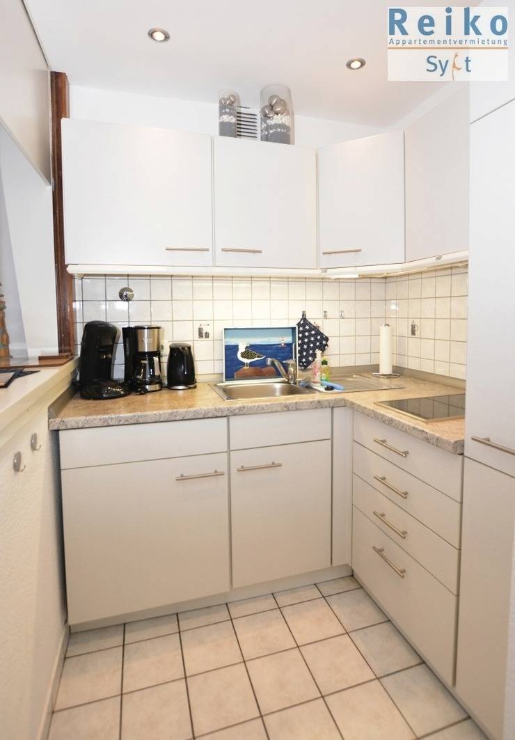 Die Küchenzeile verfügt über ein 2er-Ceran-Kochfeld, Kaffeemaschine, Wasser- und Eierkocher, Toaster, Bügelbrett und Bügeleisen